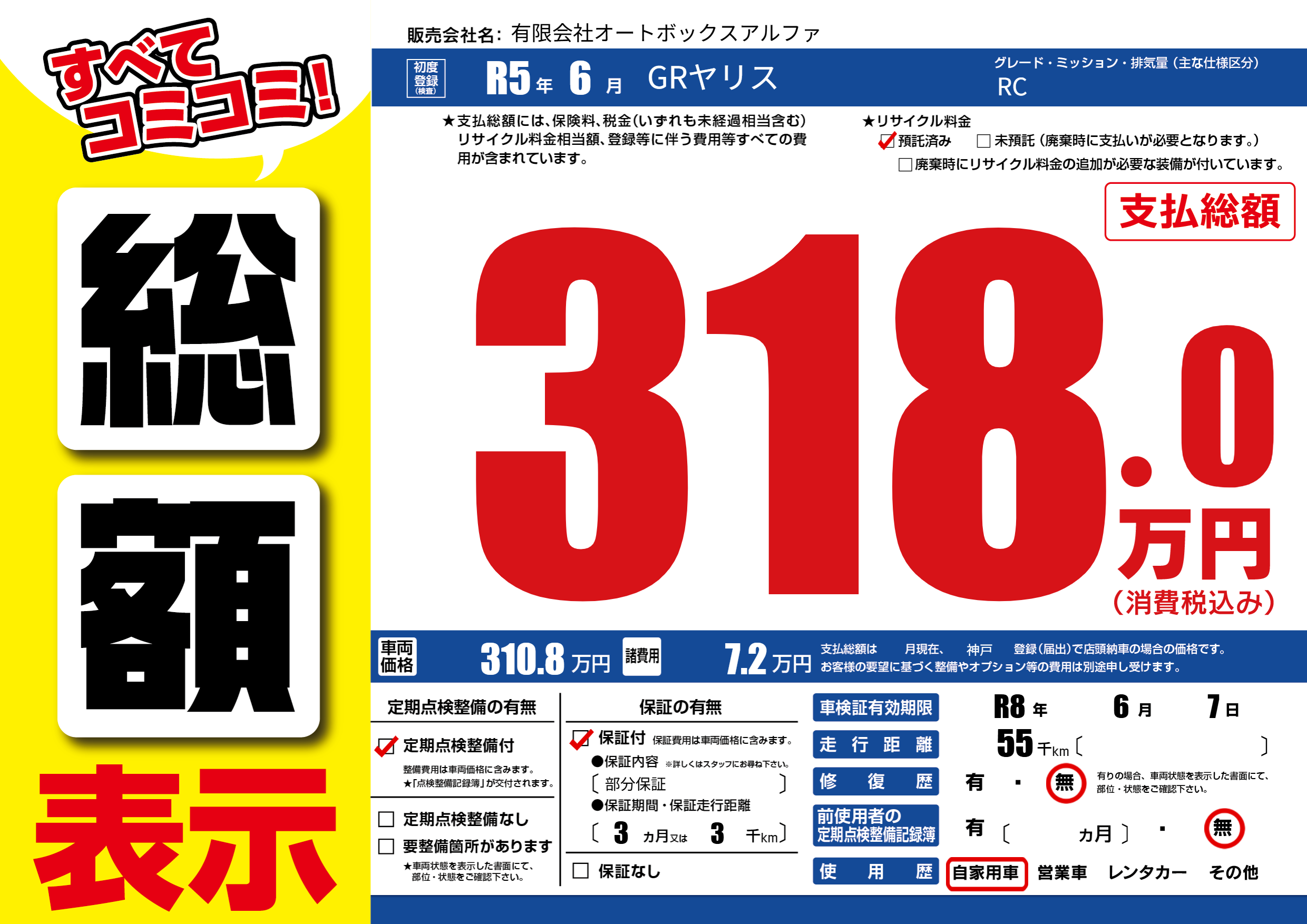 | 走行キロ | 5.5万km | 初年度登録 | R5年6月 |