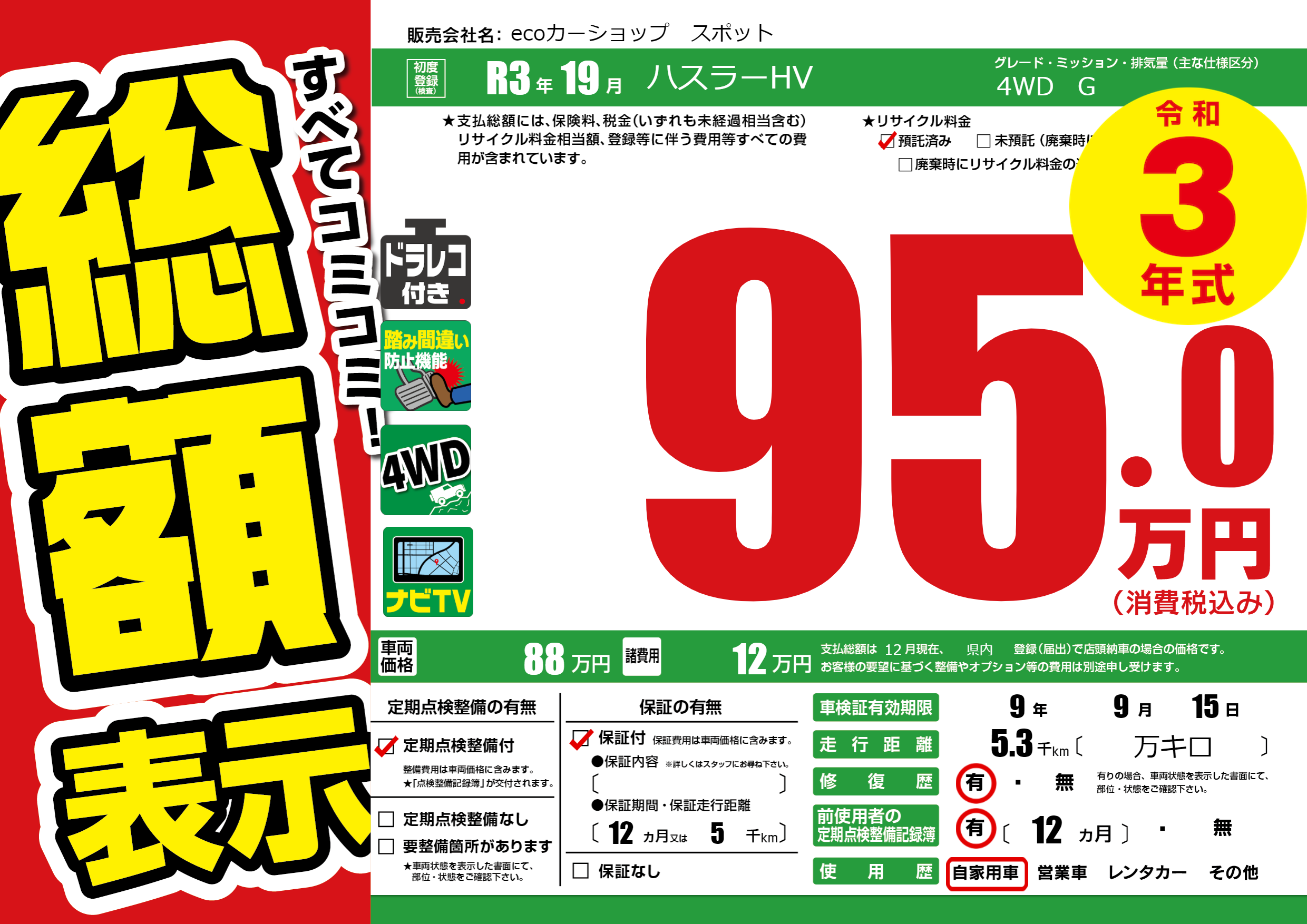 | 車検制限 | 9年 9月 15日 | ||
