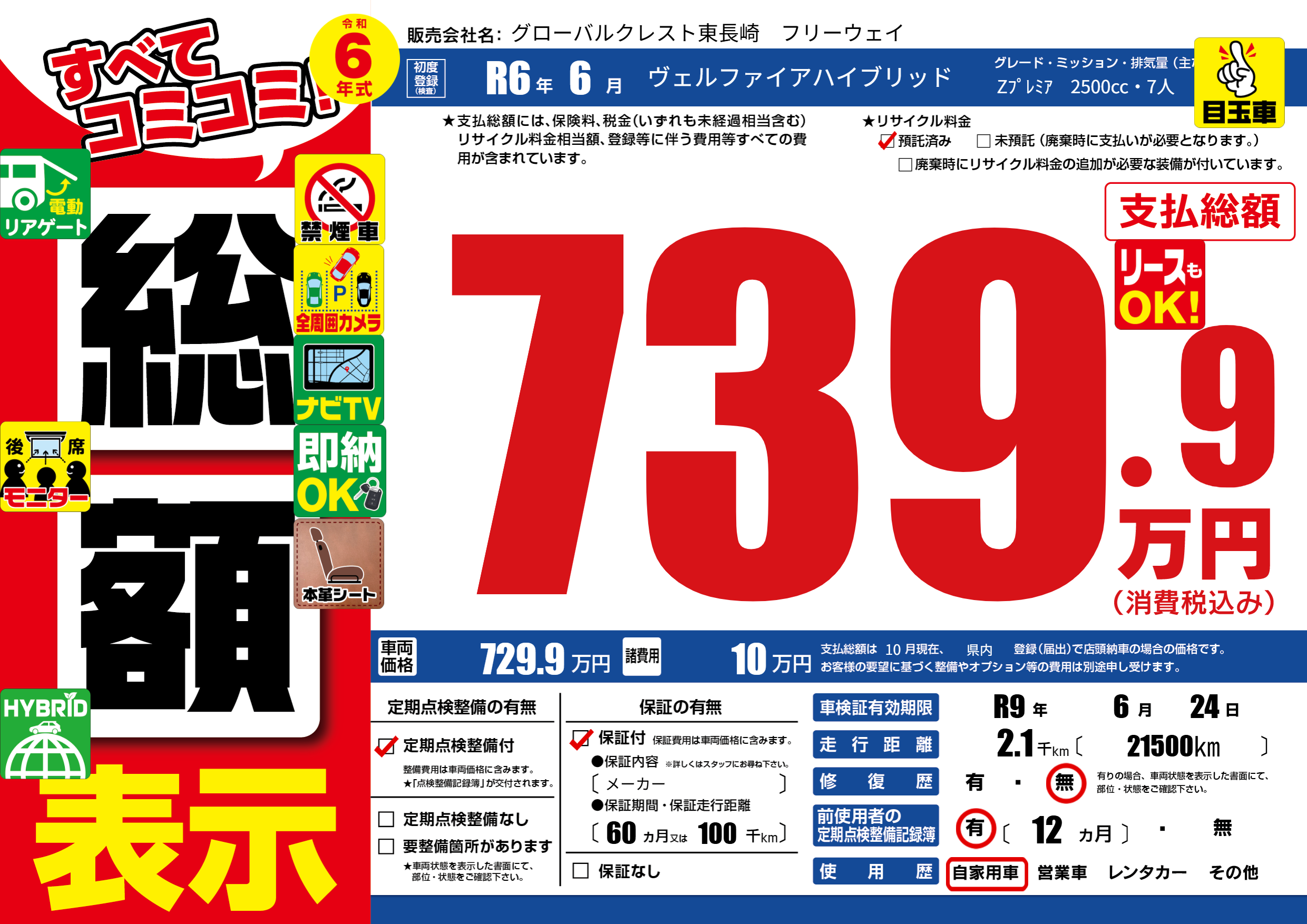 | 走行キロ | 0.2万km | 初年度登録 | R6年6月 |
