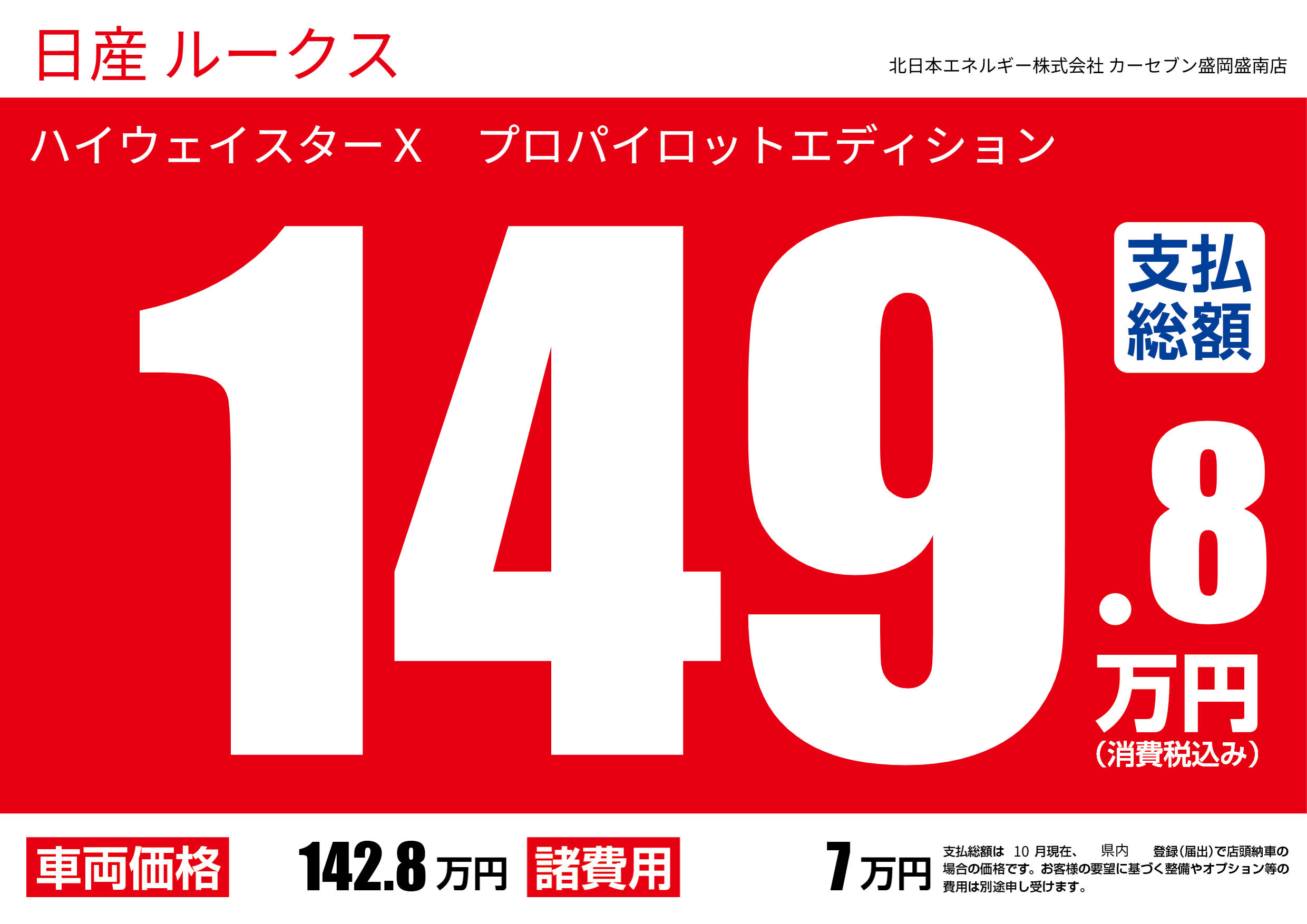 | 車名 | 日産 ルークス | グレード ミッション 排気量 |