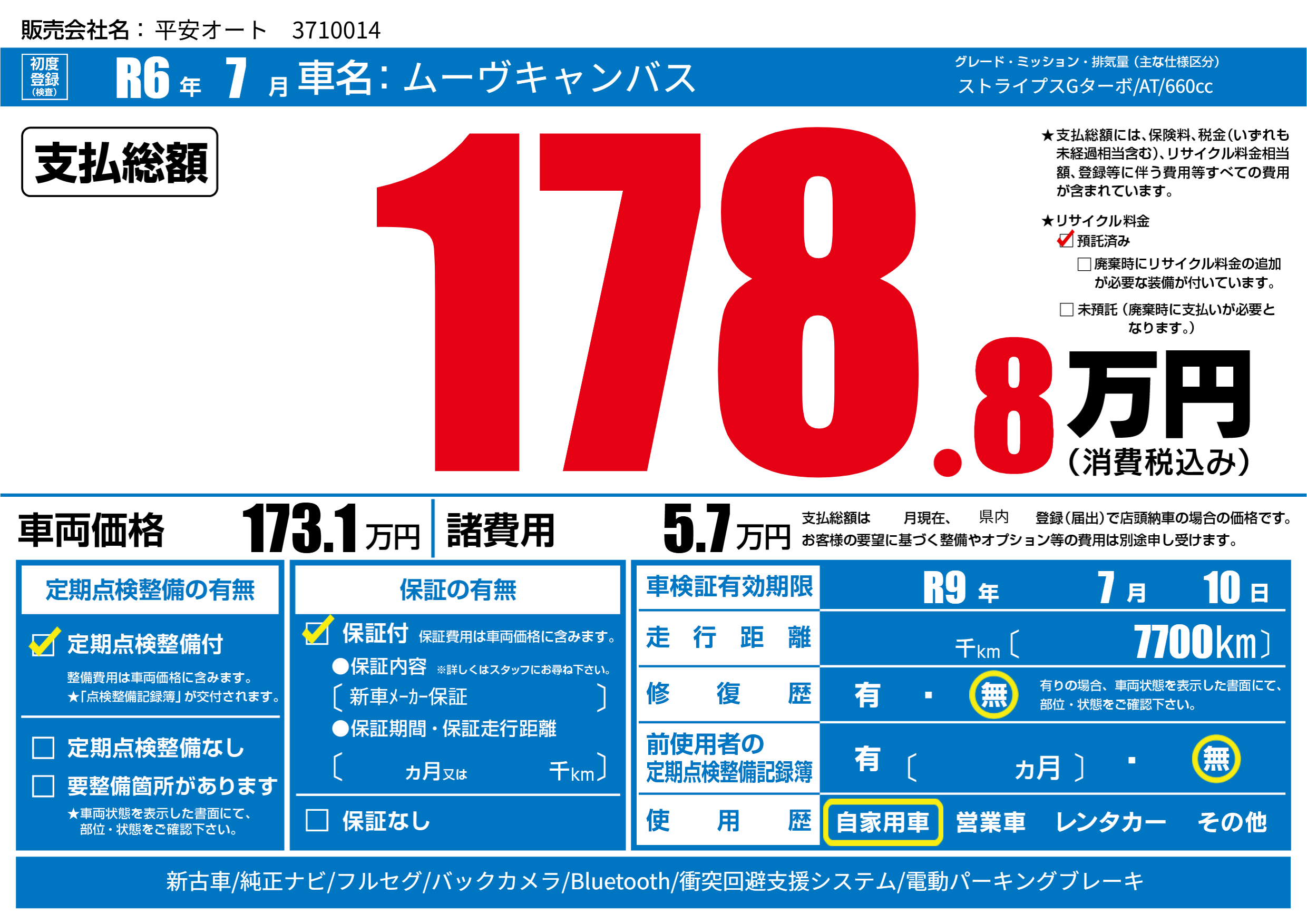車検制限 R9年 7月 10日