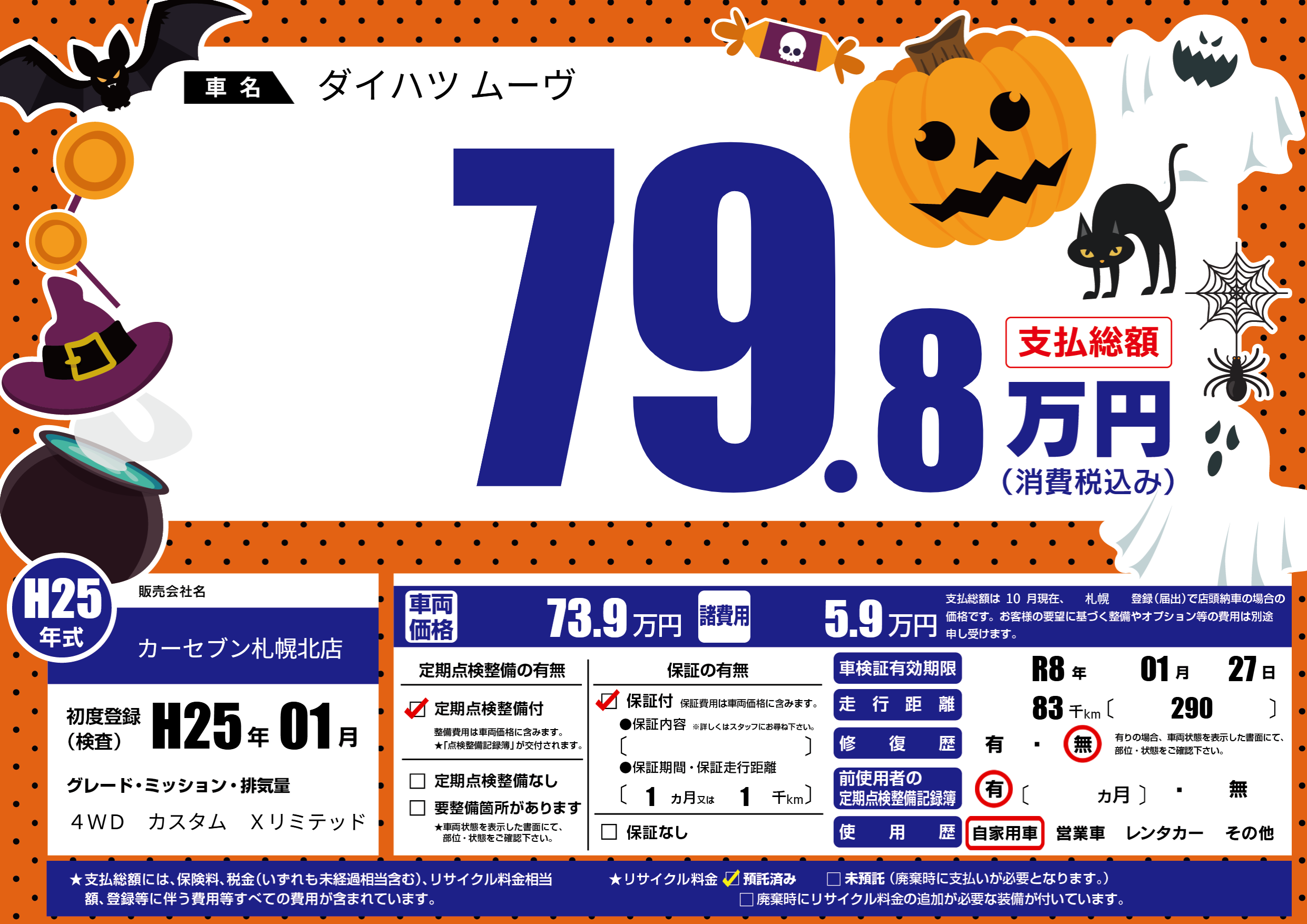| 走行キロ | 8.3万km | 初年度登録 | H25年01月 |