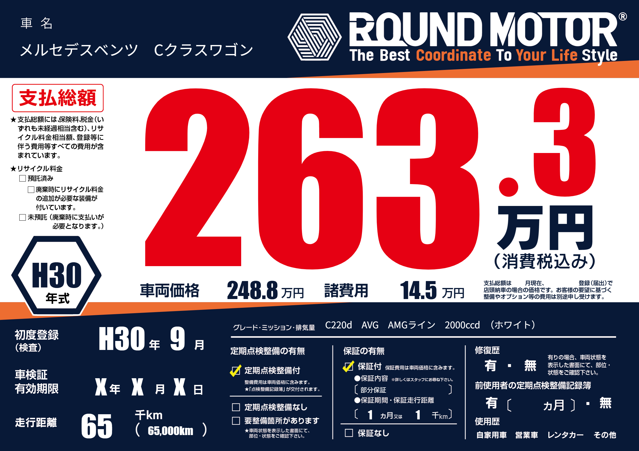 | 車名 | メルセデスベンツ Cクラスワゴン | グレード ミッション 排気量 |