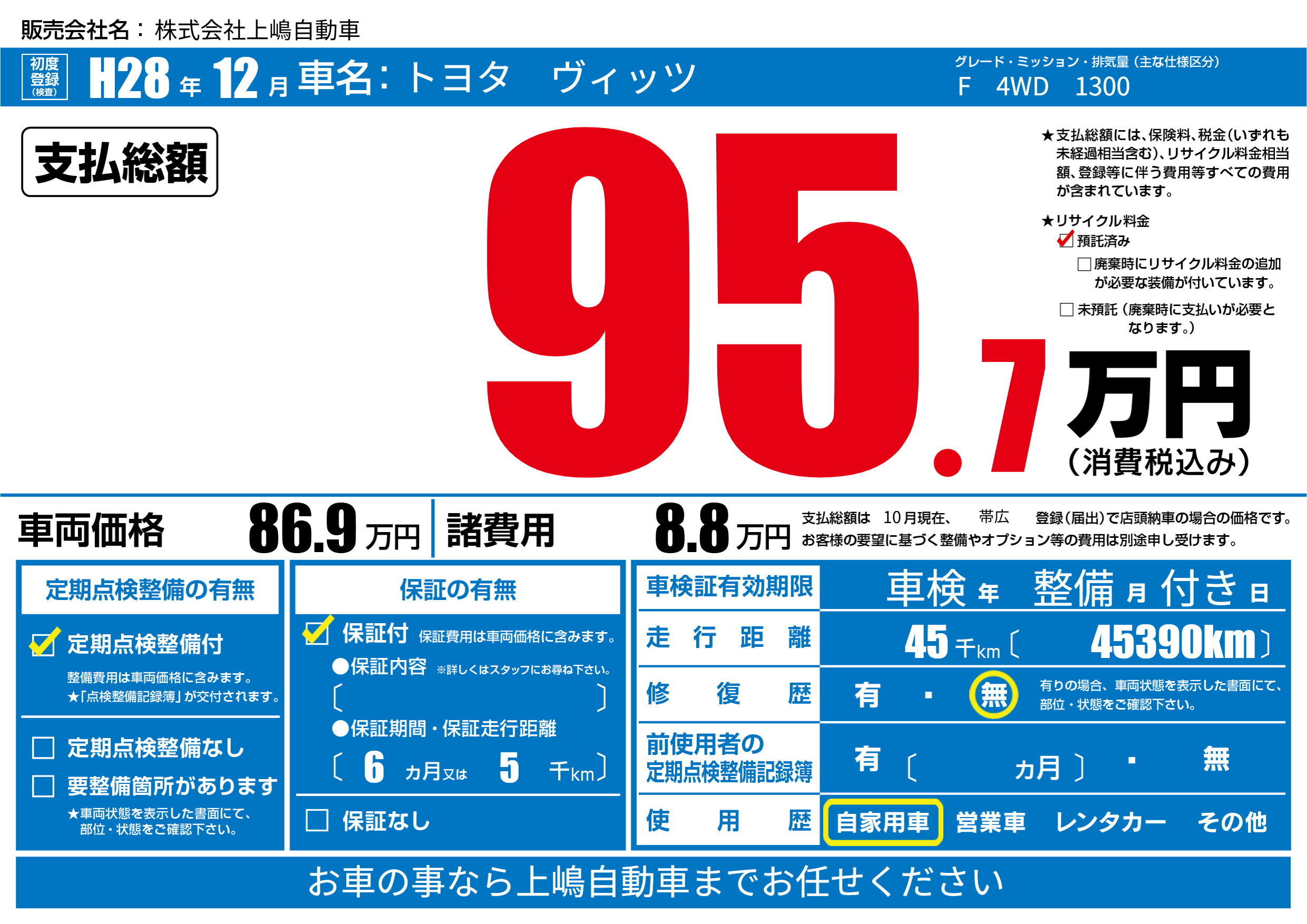 保証付き 保証内容(---) 6ヶ月または(5)千kmまで |