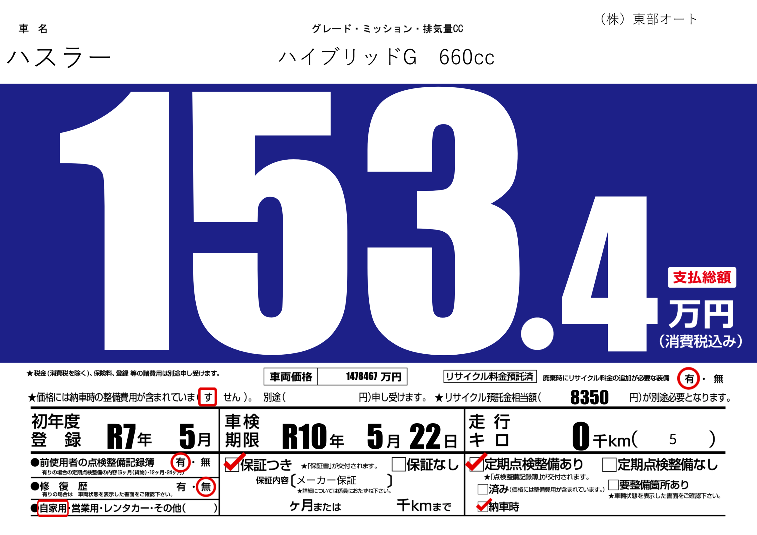 | 車名 | ハスラー | グレード ミッション 排気量 |