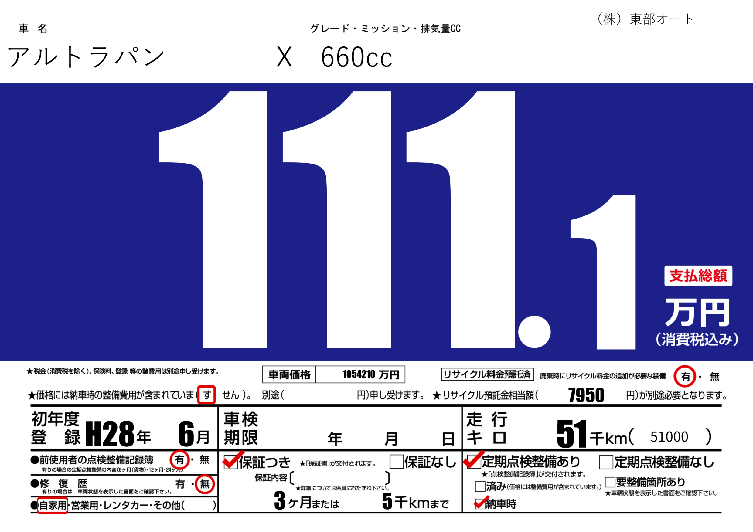 | 定期点検整備 | 定期点検整備あり 納車時あり | ||