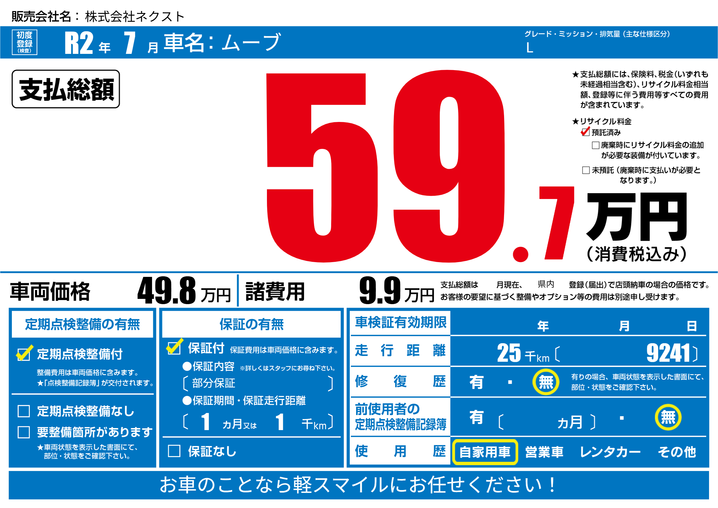 | 車名 | ムーブ | グレード ミッション 排気量 |