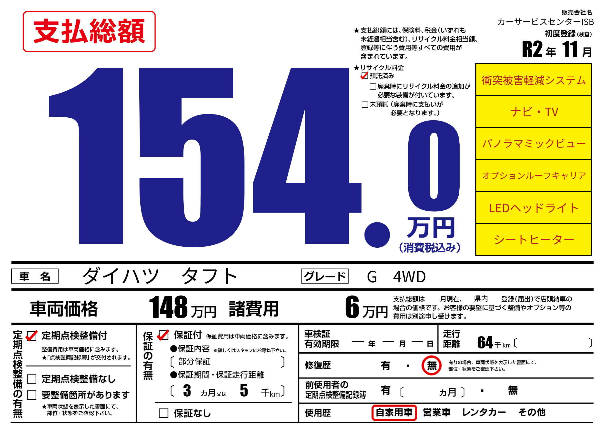 | 走行キロ | 6.4万km | 初年度登録 | R2年11月 |