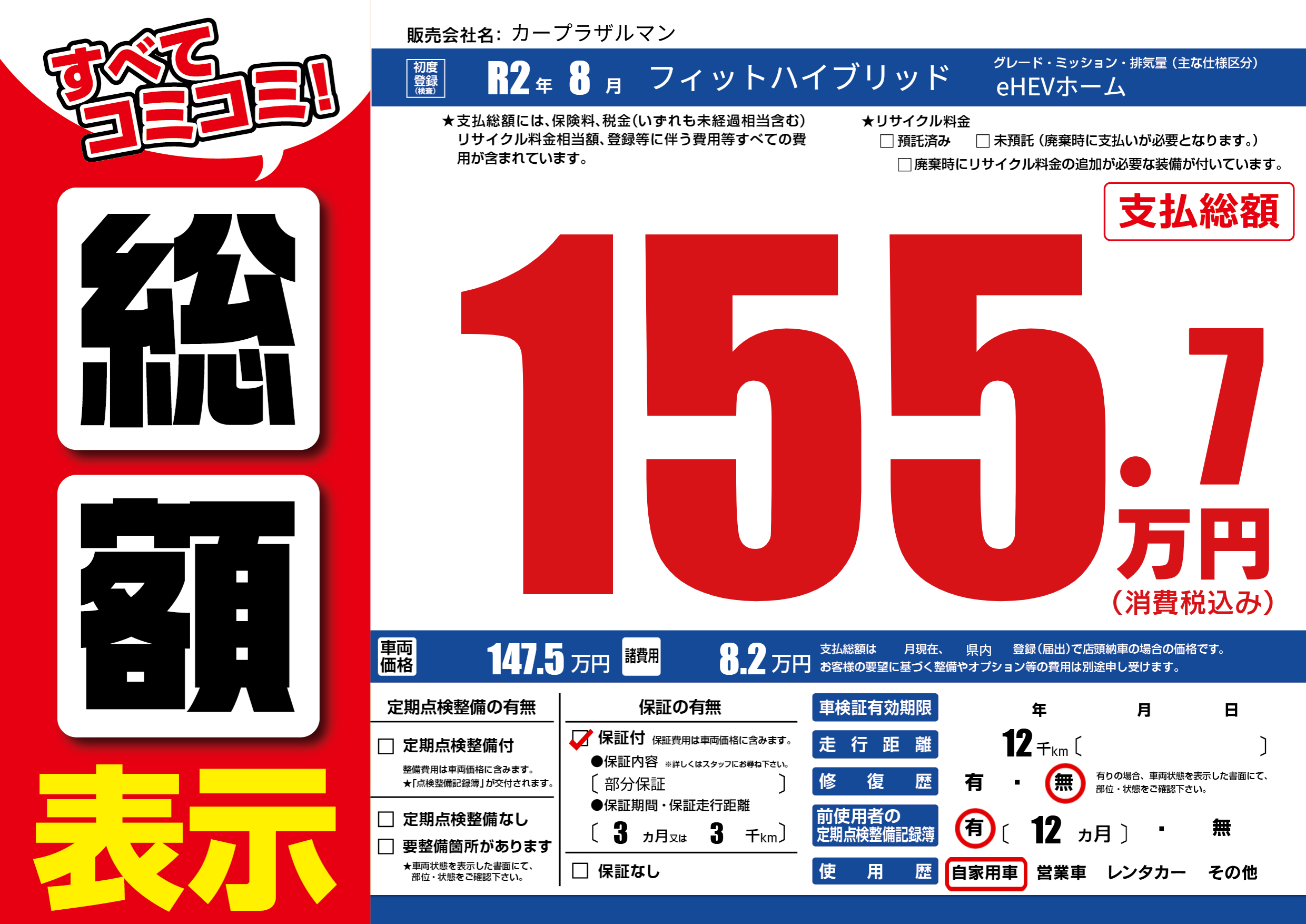保証付き 保証内容(部分保証) 3ヶ月または(3)千kmまで |