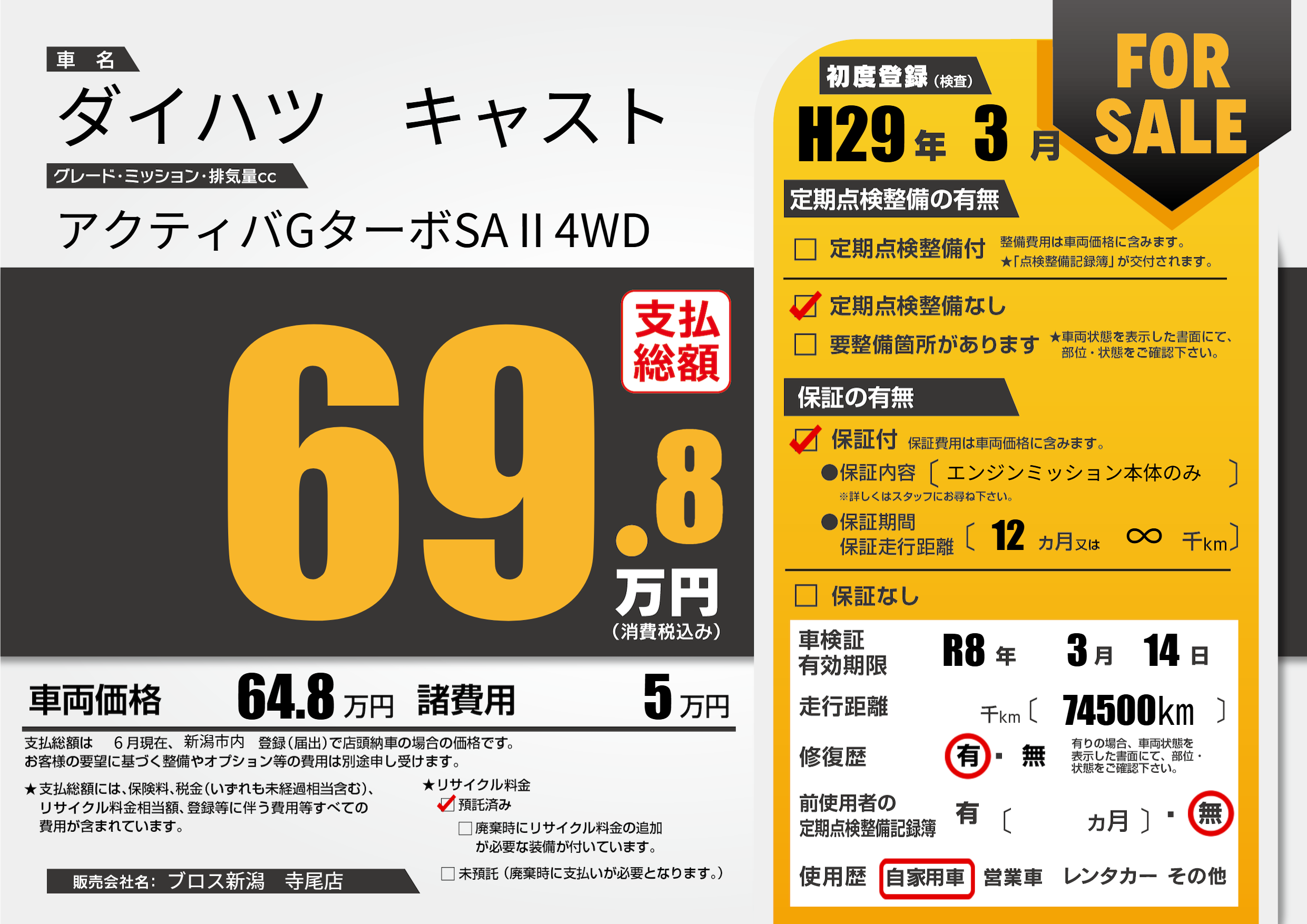 なし | 車検制限 | R8年3月14月 |