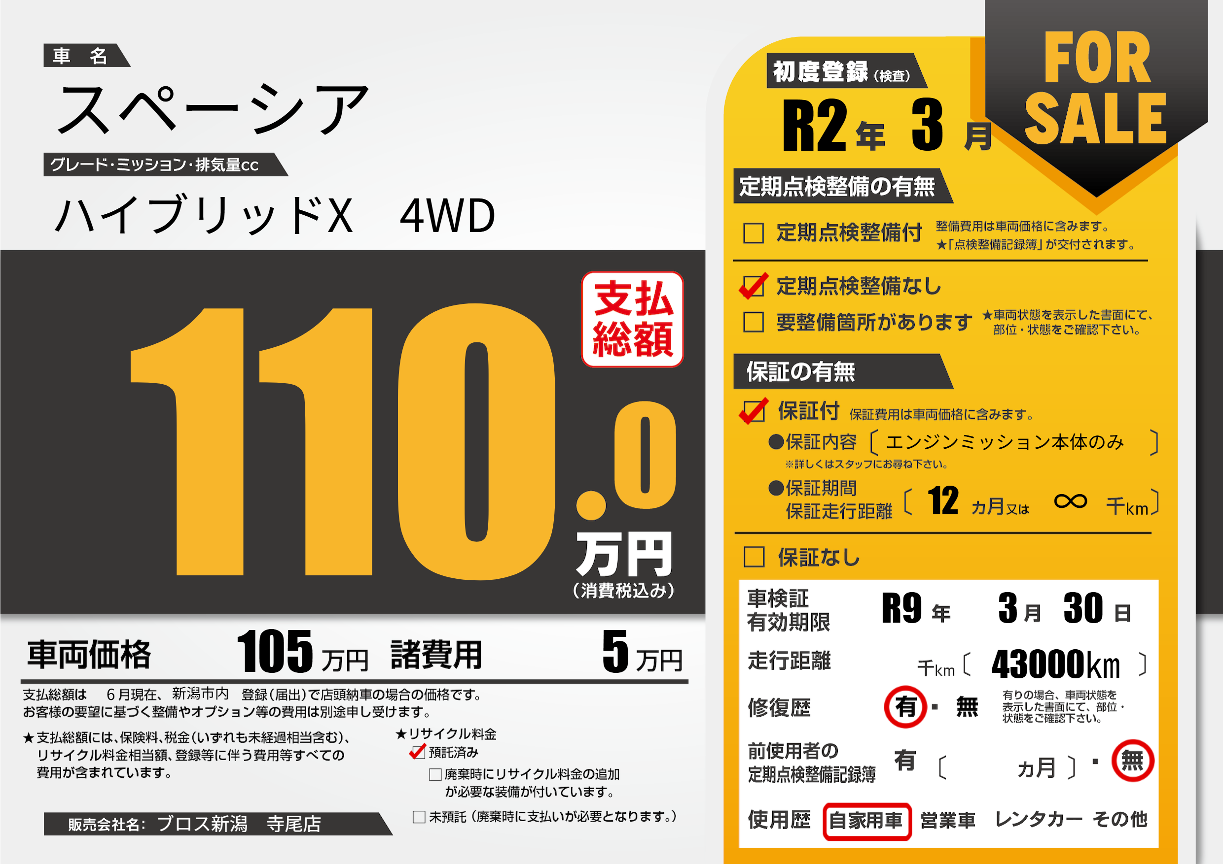 なし | 車検制限 | R9年3月30月 |