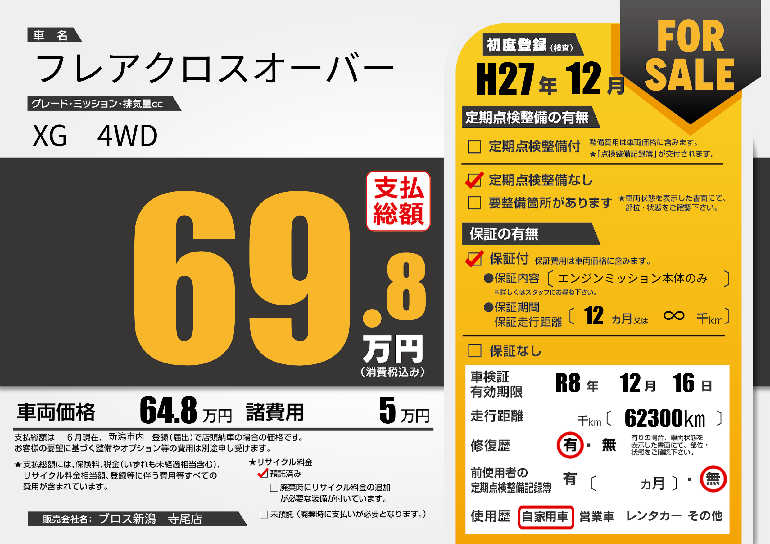 初年度登録 H27年12月