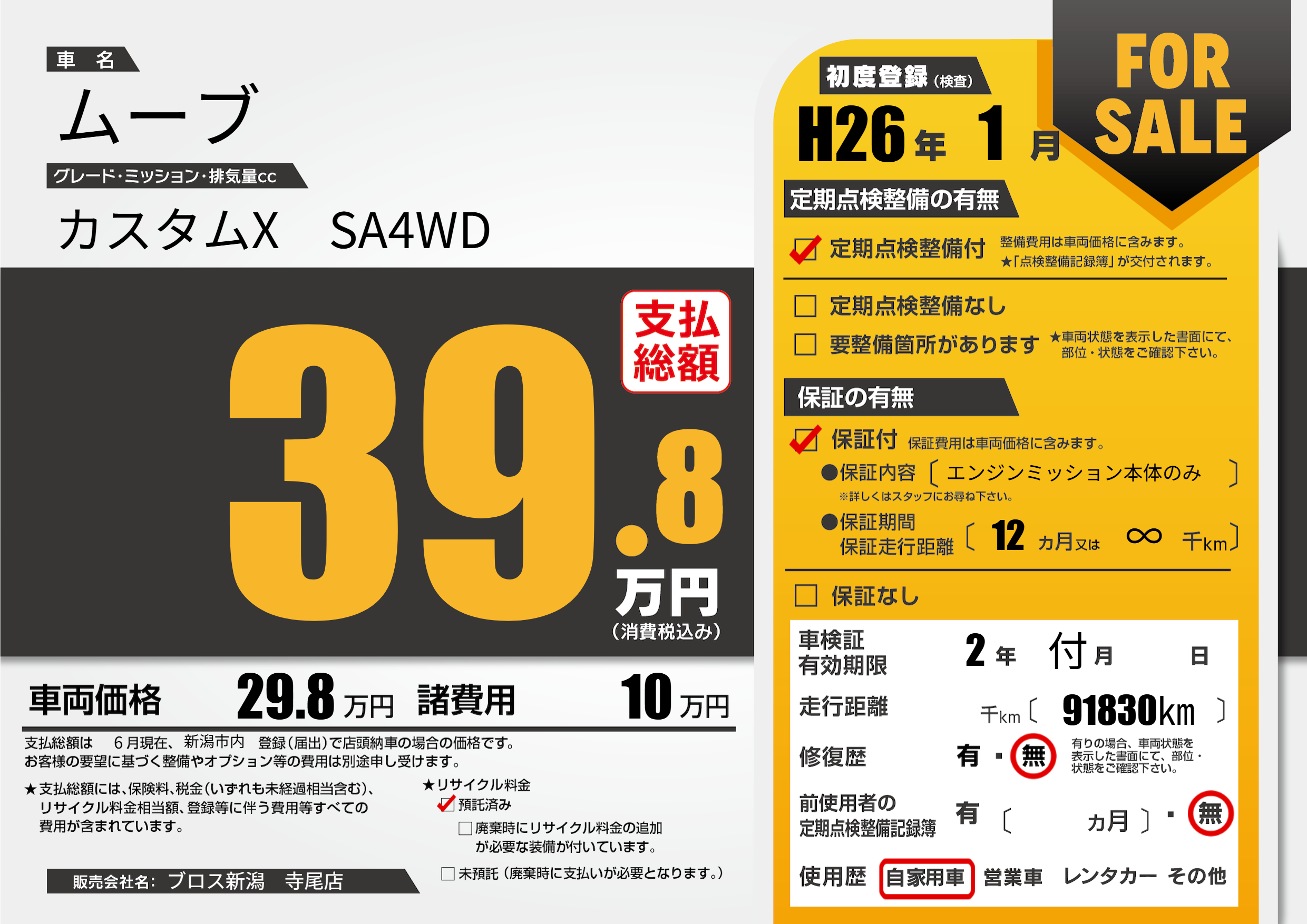 | 車名 | ムーブ | グレード ミッション 排気量 |