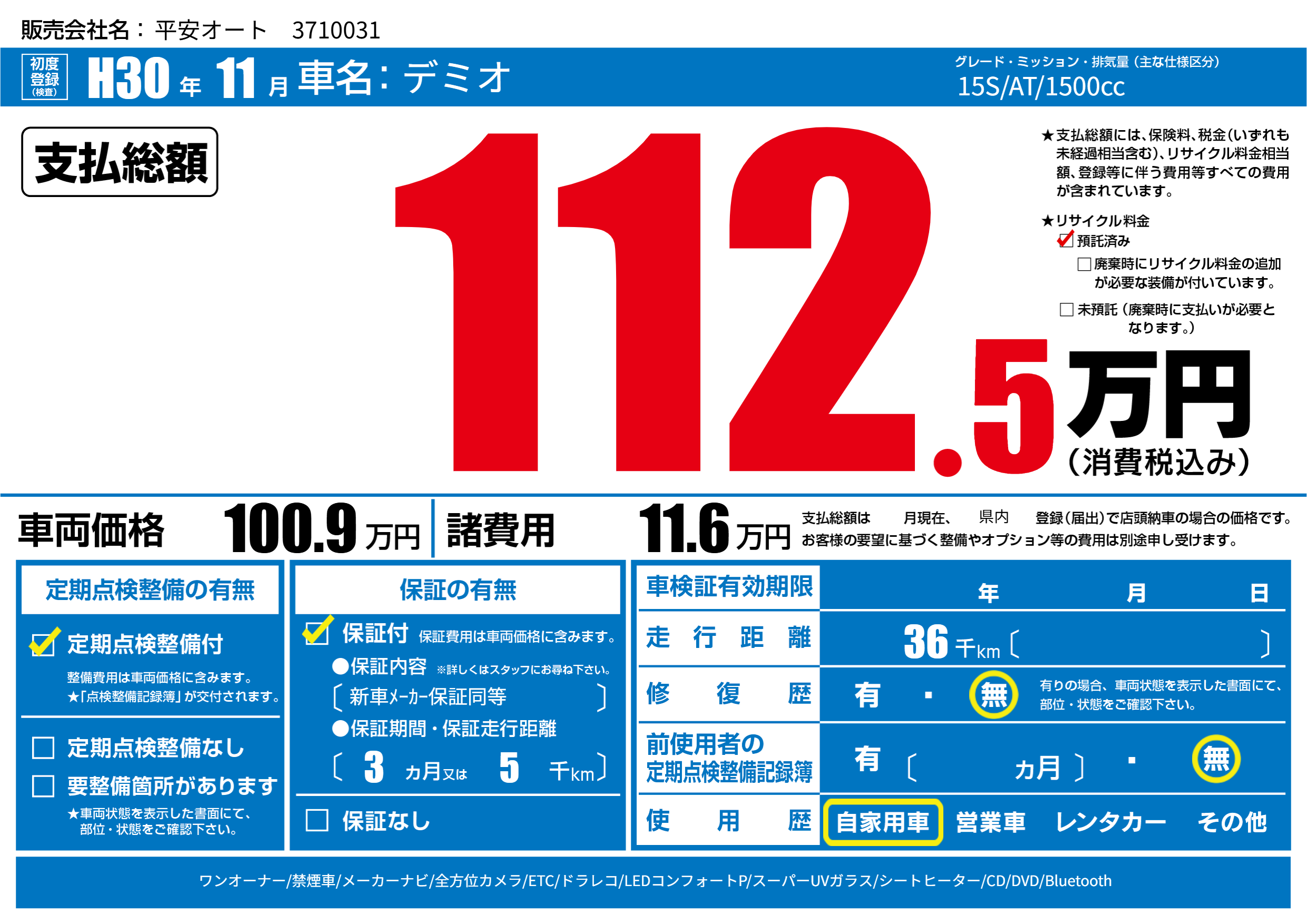 | 車名 | デミオ | グレード ミッション 排気量 |