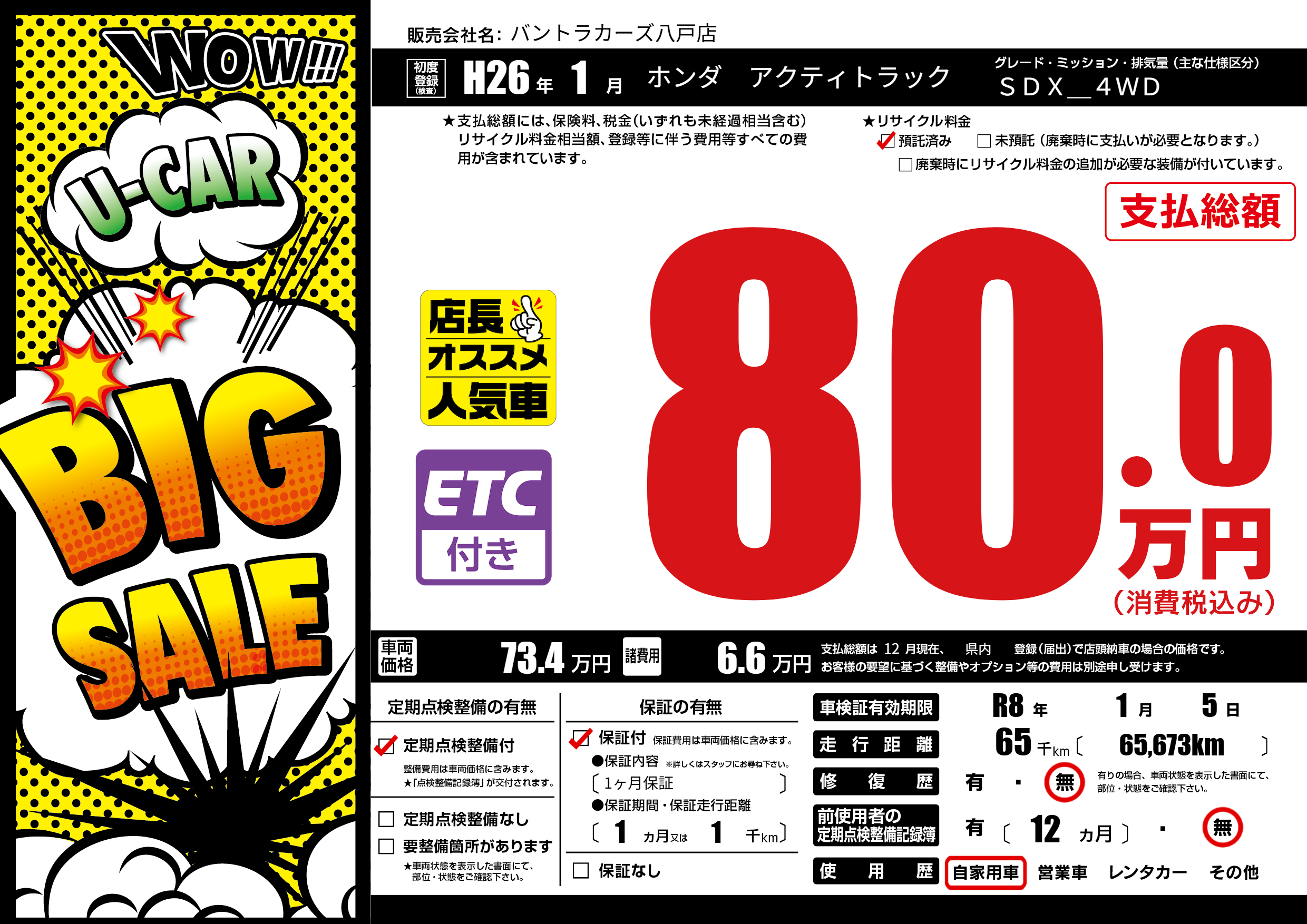 | 走行キロ | 6.5万km | ||