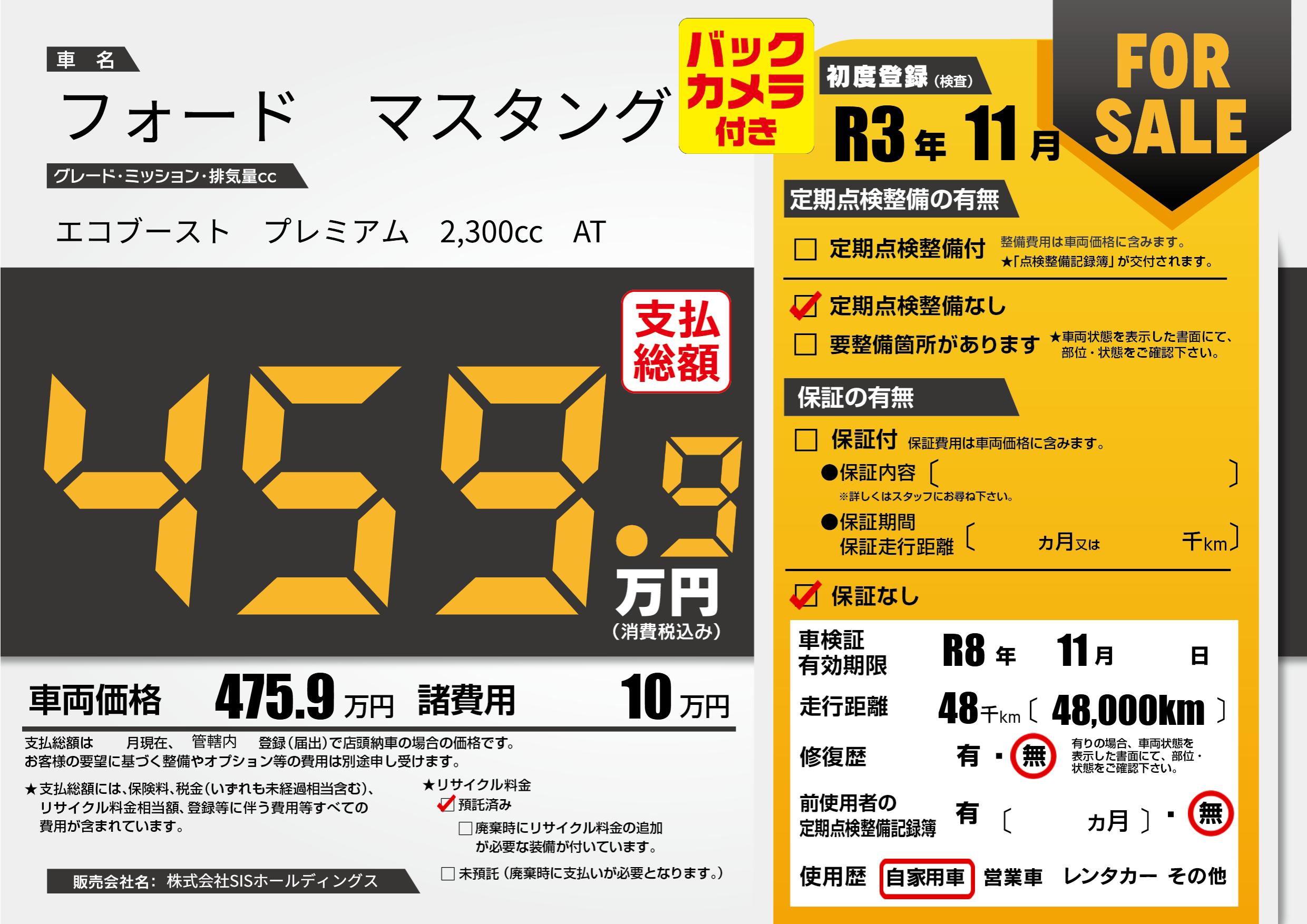 | 定期点検整備 | 定期点検整備なし | ||