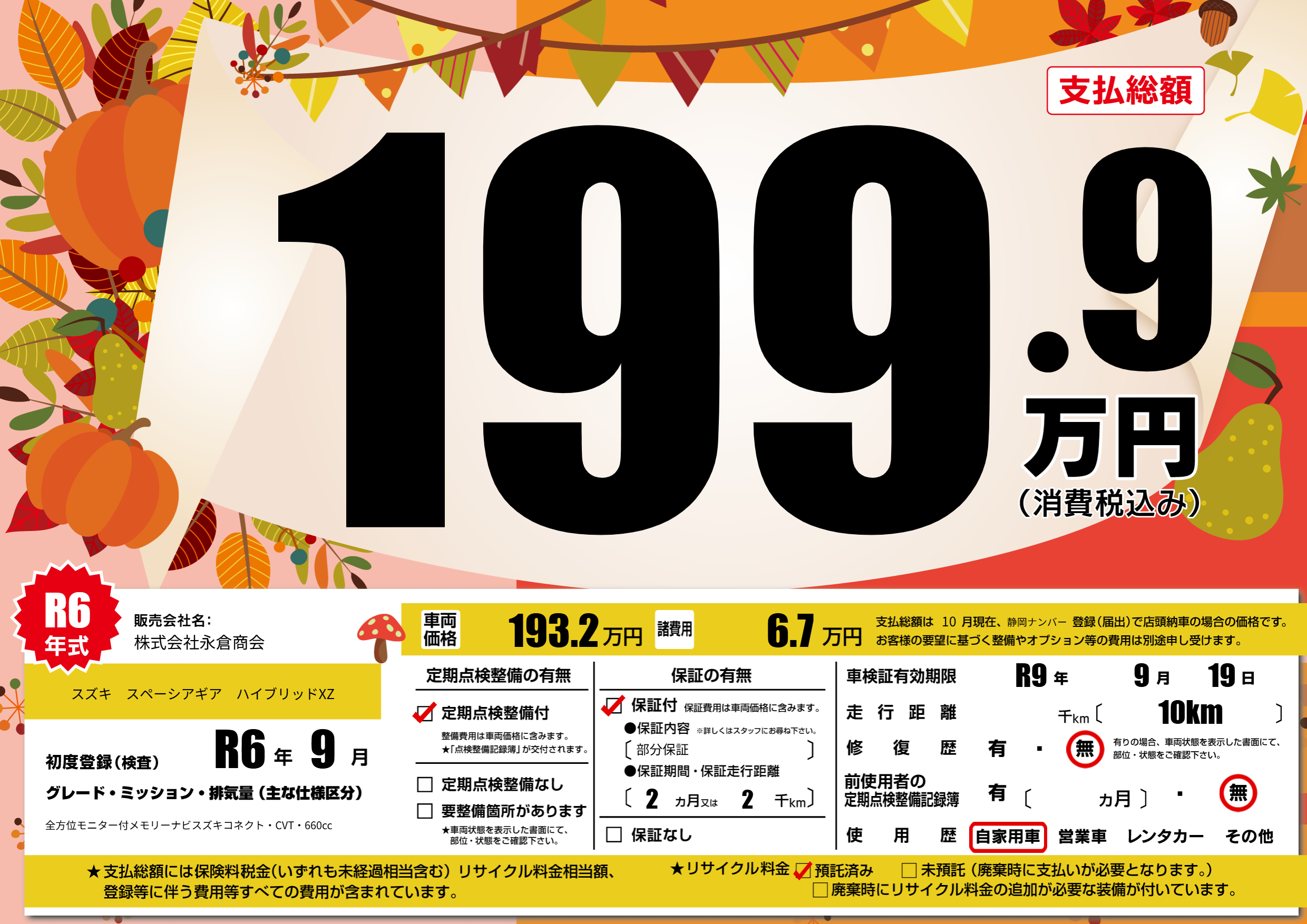 | 走行キロ | - | 初年度登録 | R6年9月 |
