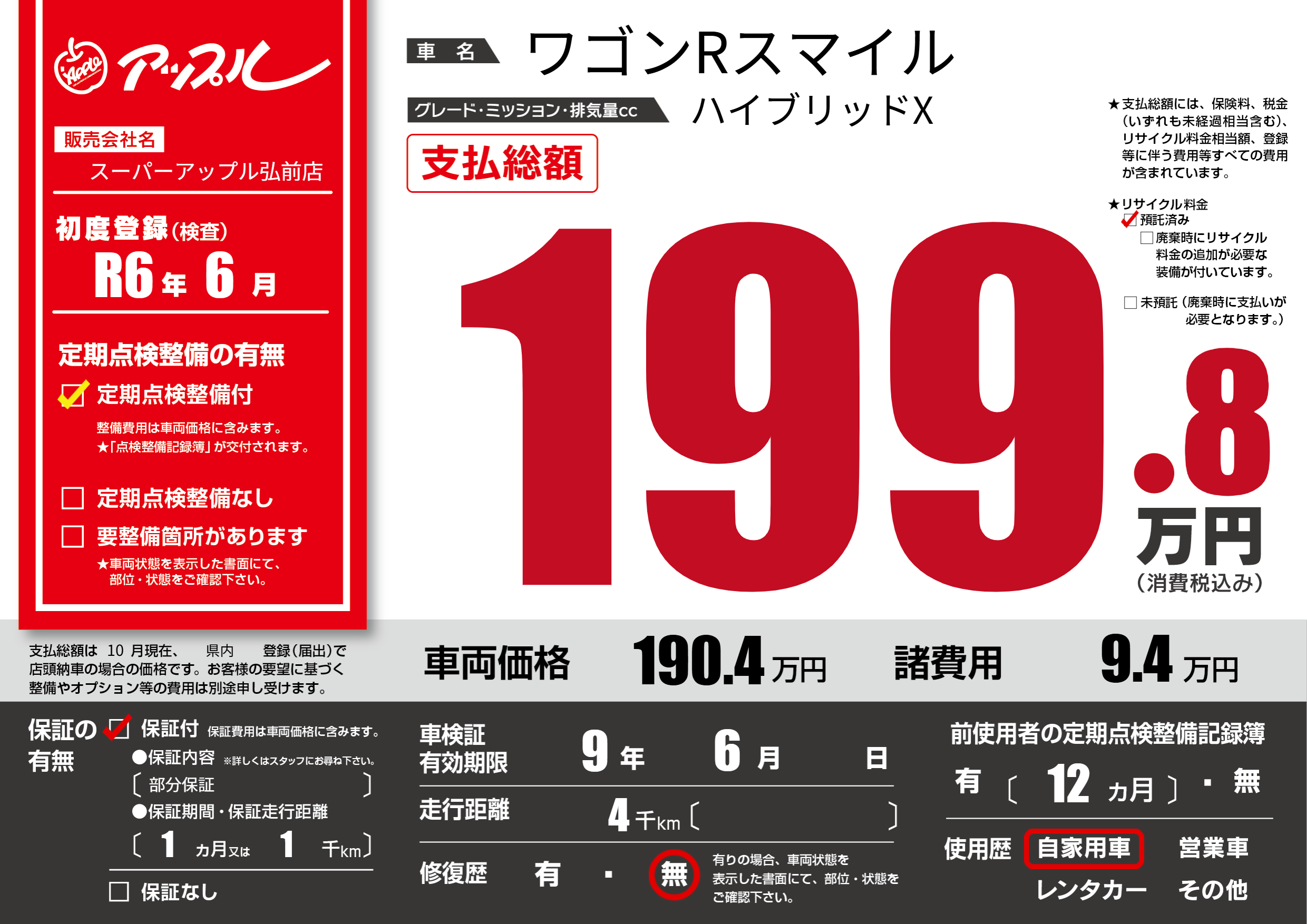 なし | 車検制限 | 9年6月---月 |