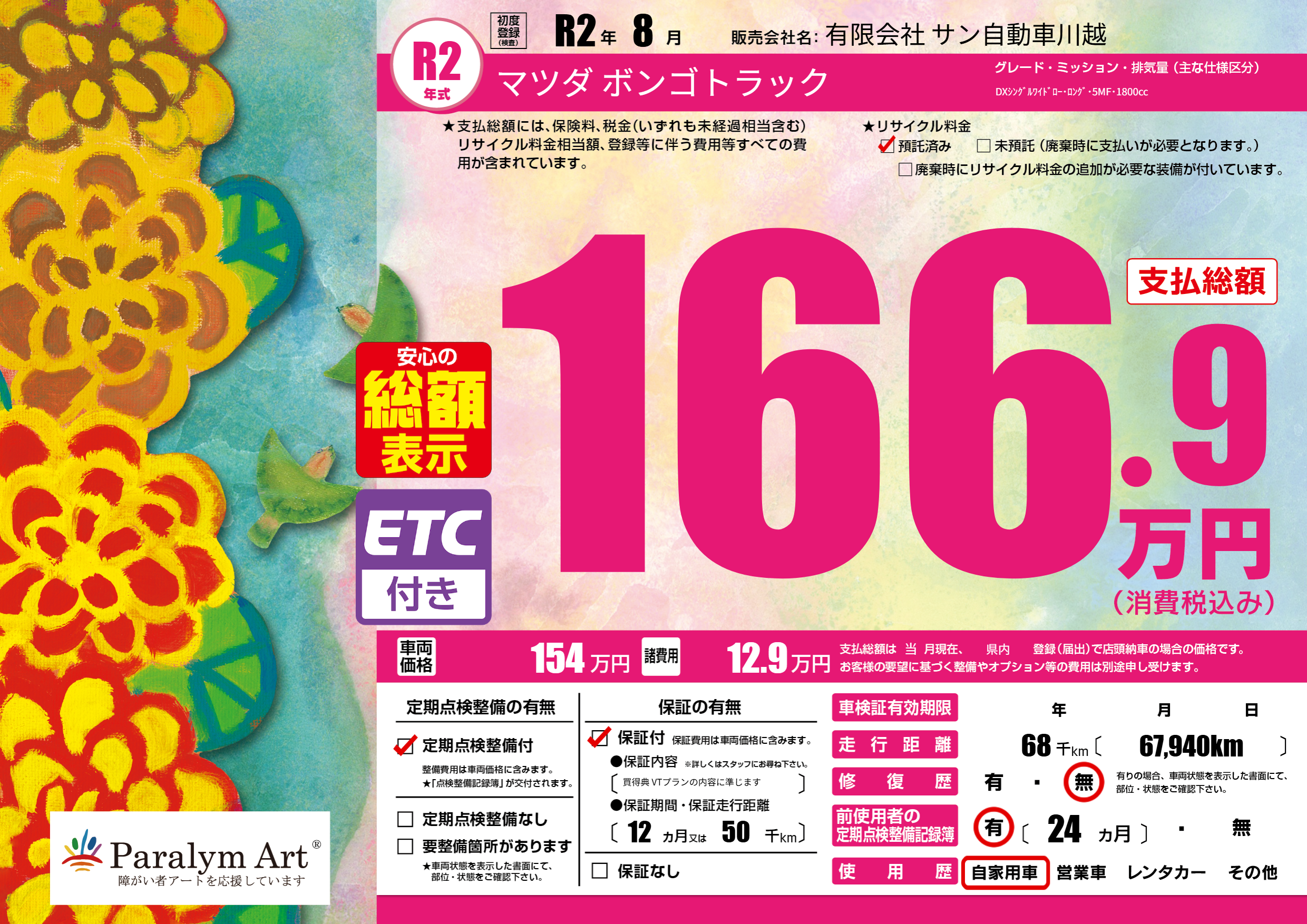 | 走行キロ | 6.8万km | 初年度登録 | R2年8月 |