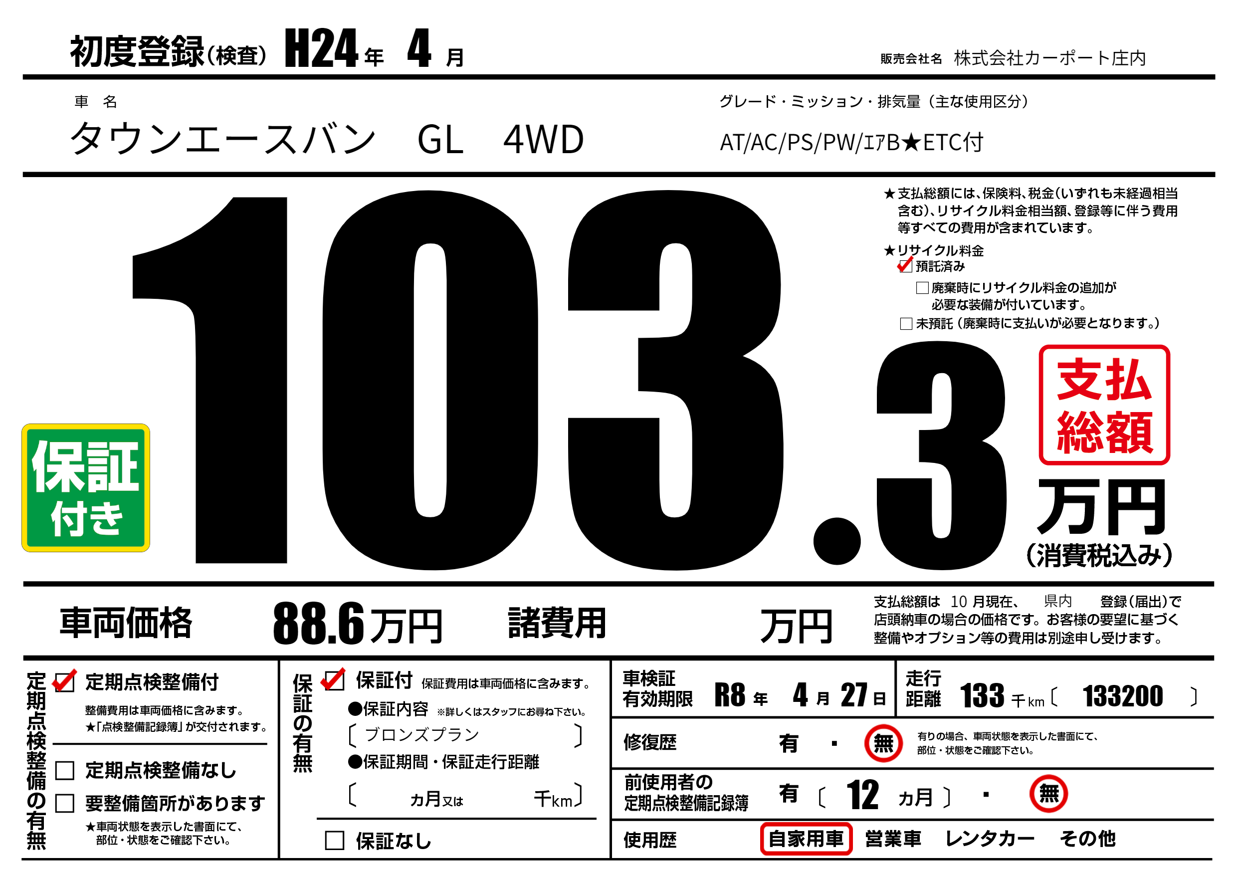 なし | 車検制限 | R8年4月27月 |