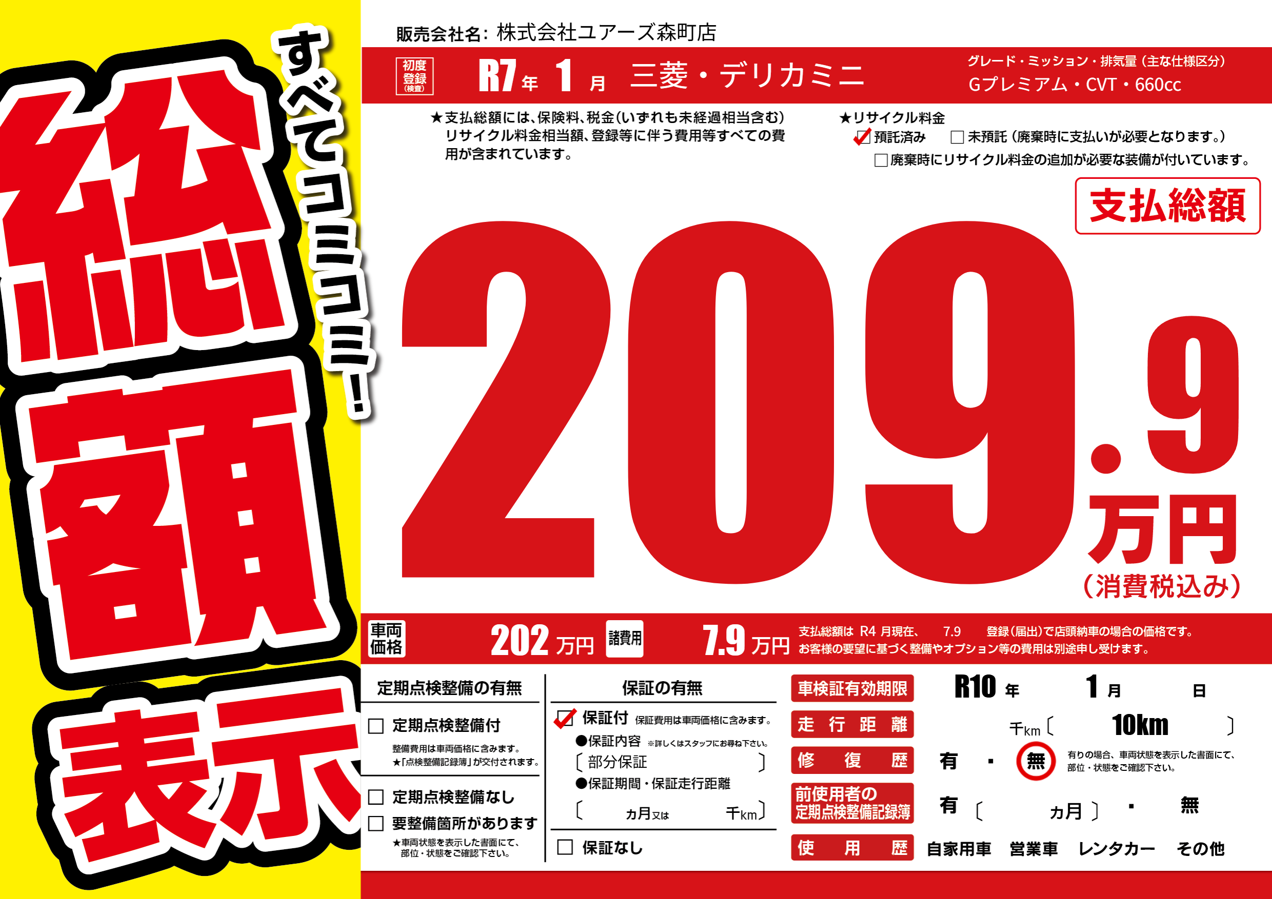| 車検制限 | R10年 1月 - 日 | ||
