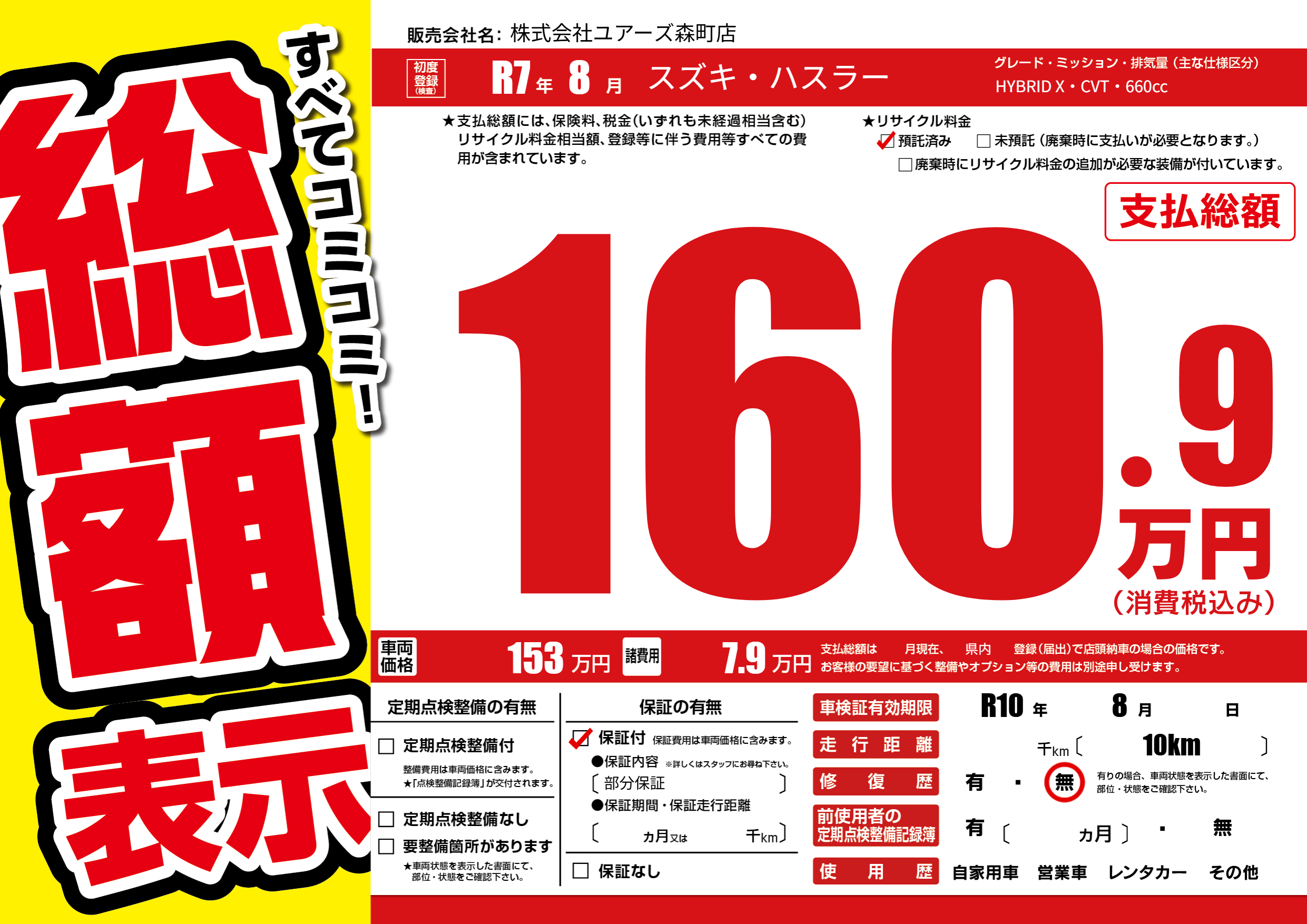 なし | 車検制限 | R10年8月---月 |