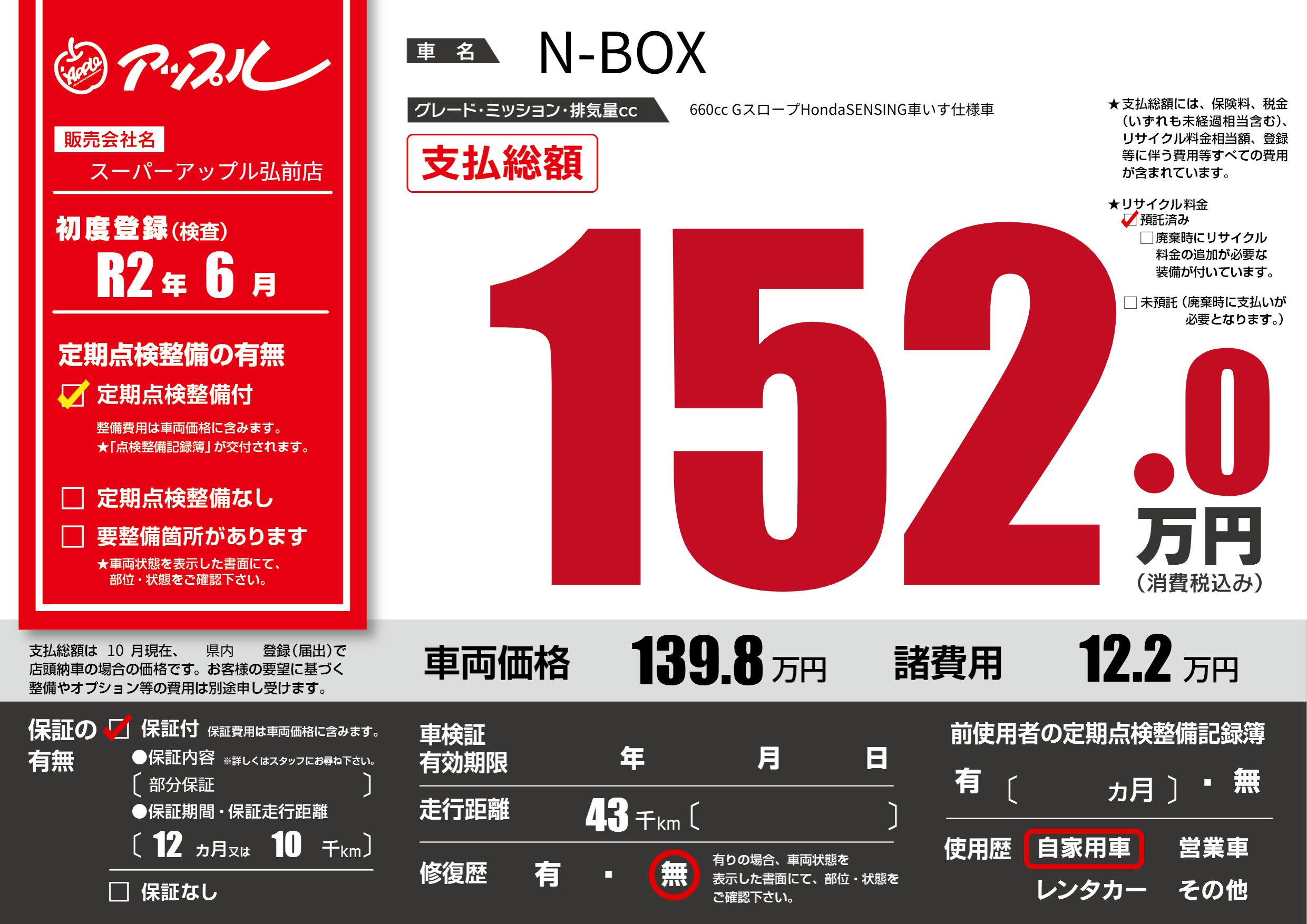 | 走行キロ | 4.3万km | 初年度登録 | R2年6月 |