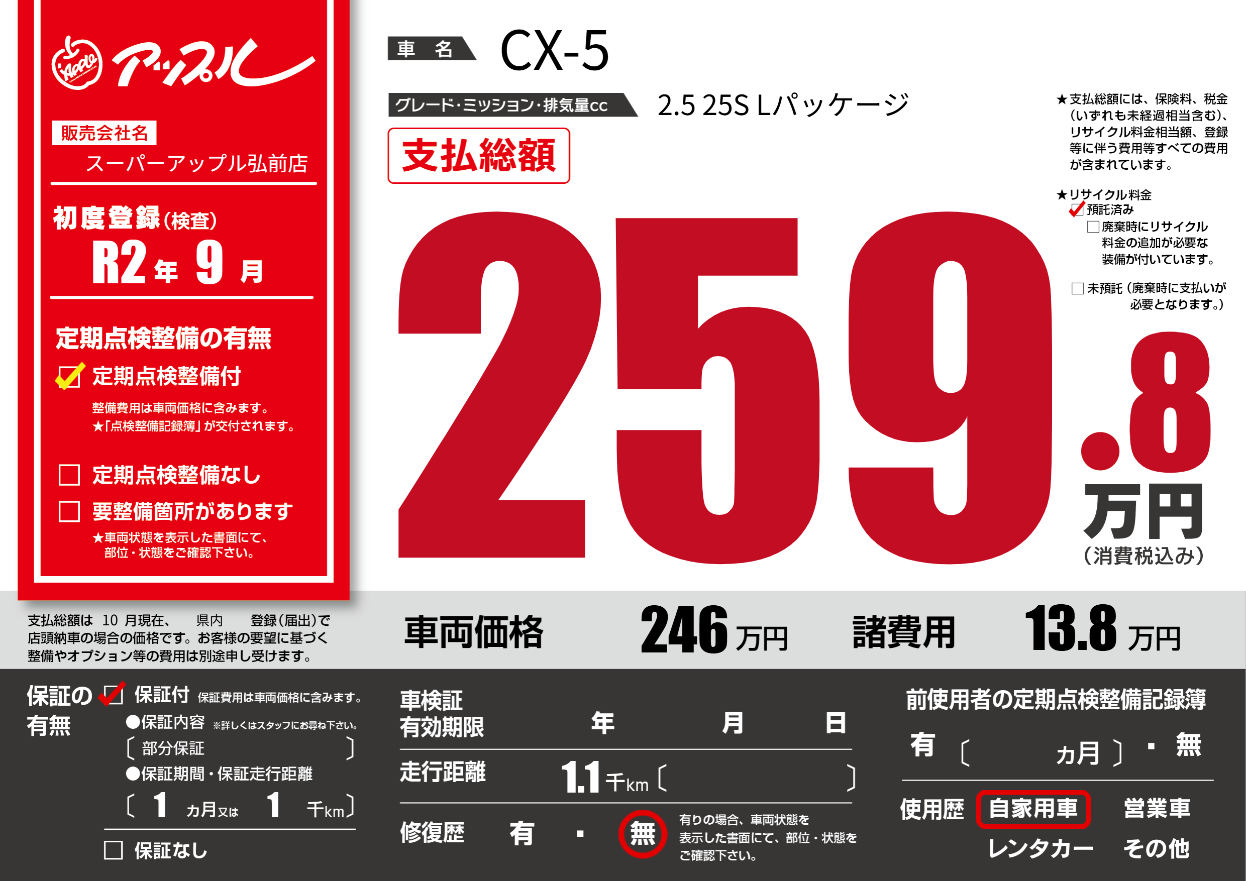 | 車名 | CX-5 | グレード ミッション 排気量 |