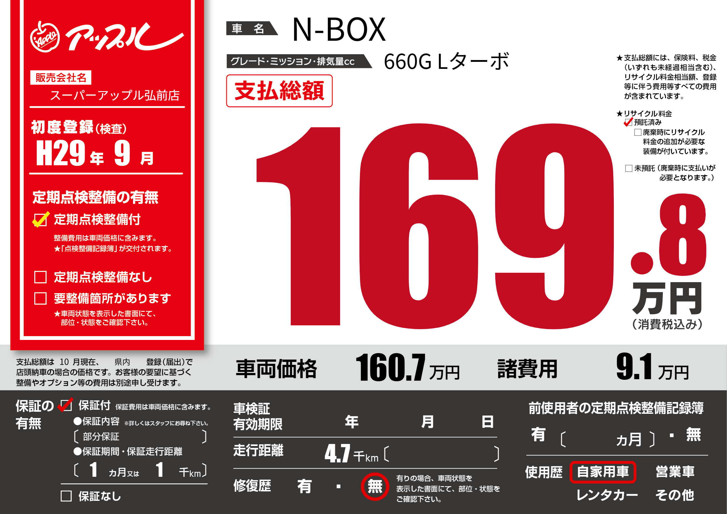 | 走行キロ | 0.4万km | 初年度登録 | H29年9月 |