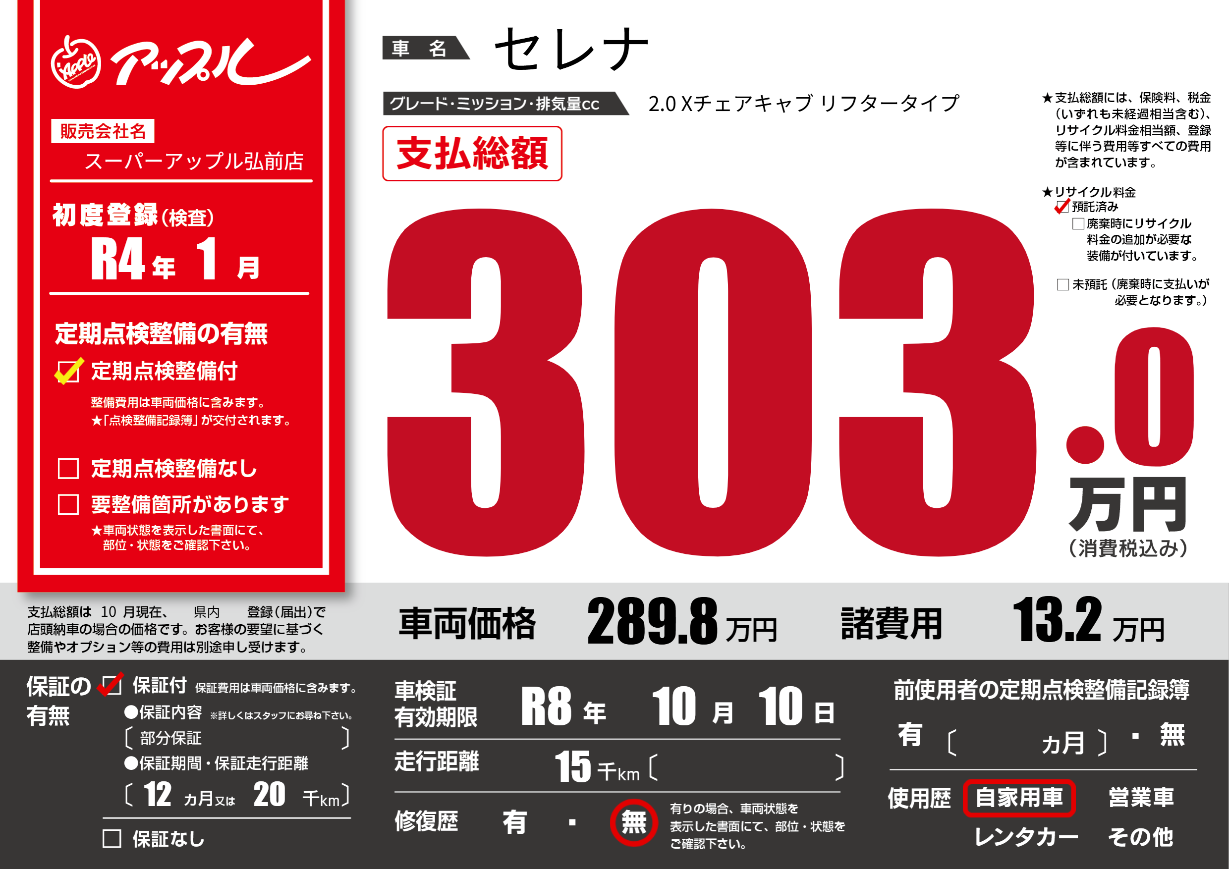 | 車名 | セレナ | グレード ミッション 排気量 |