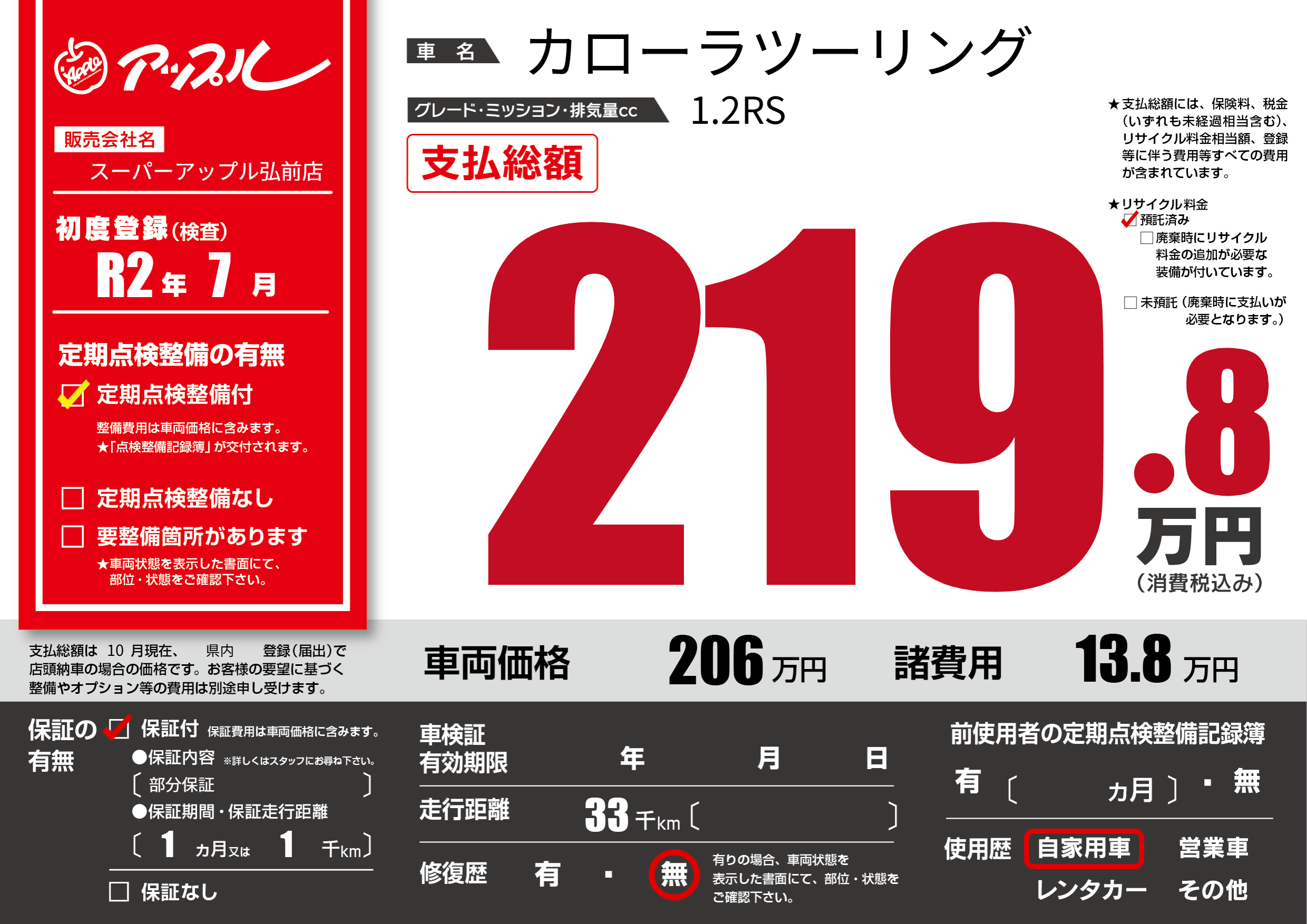 | 定期点検整備 | 定期点検整備あり | ||