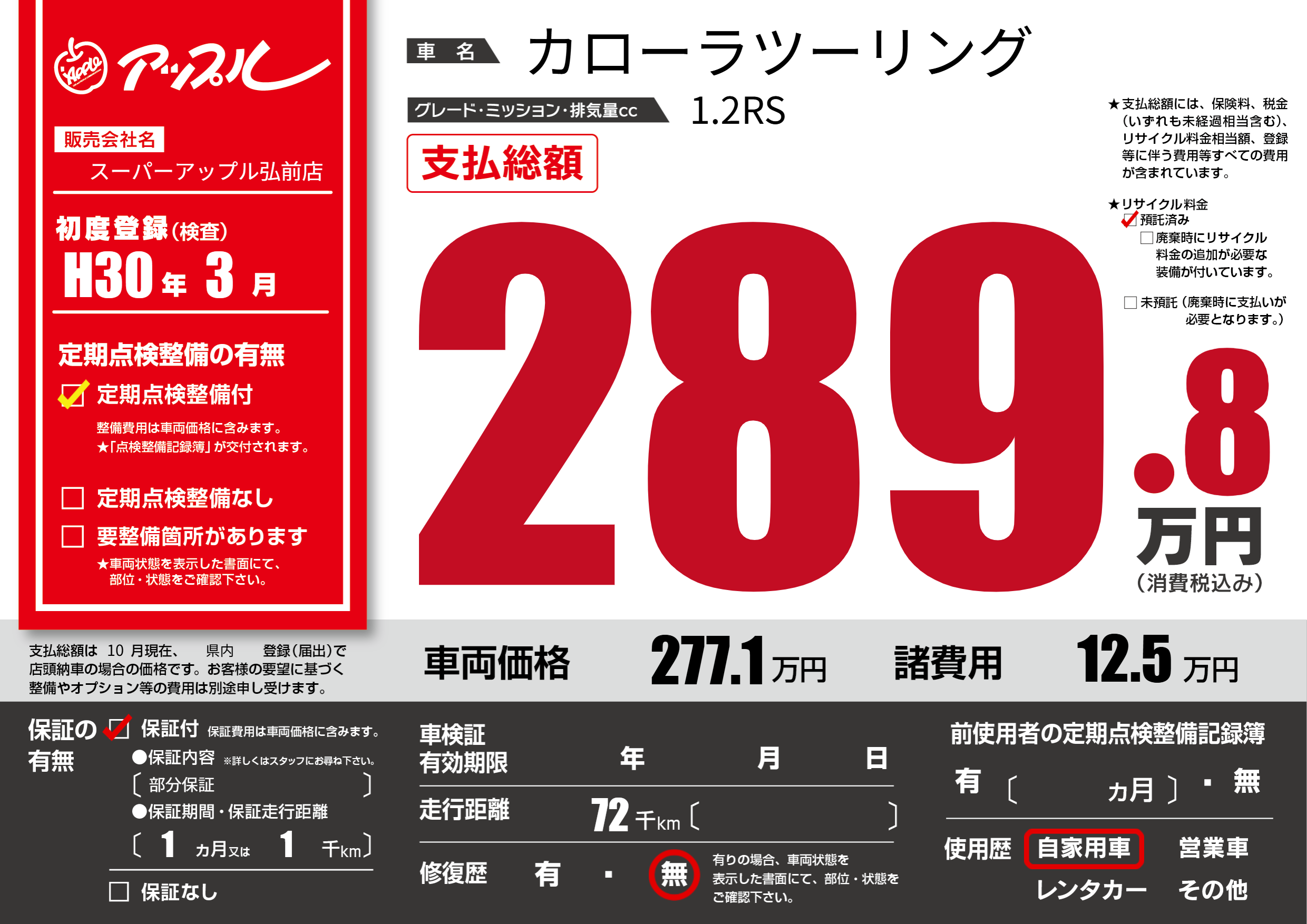 | 車名 | カローラツーリング | グレード ミッション 排気量 |