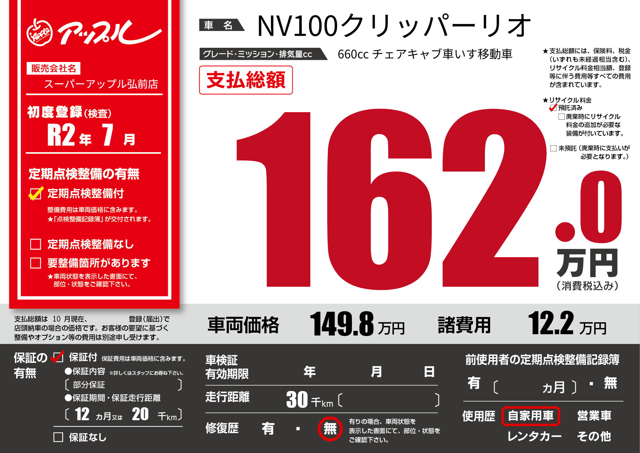 保証付き 保証内容(部分保証) 12ヶ月または(20)千kmまで |