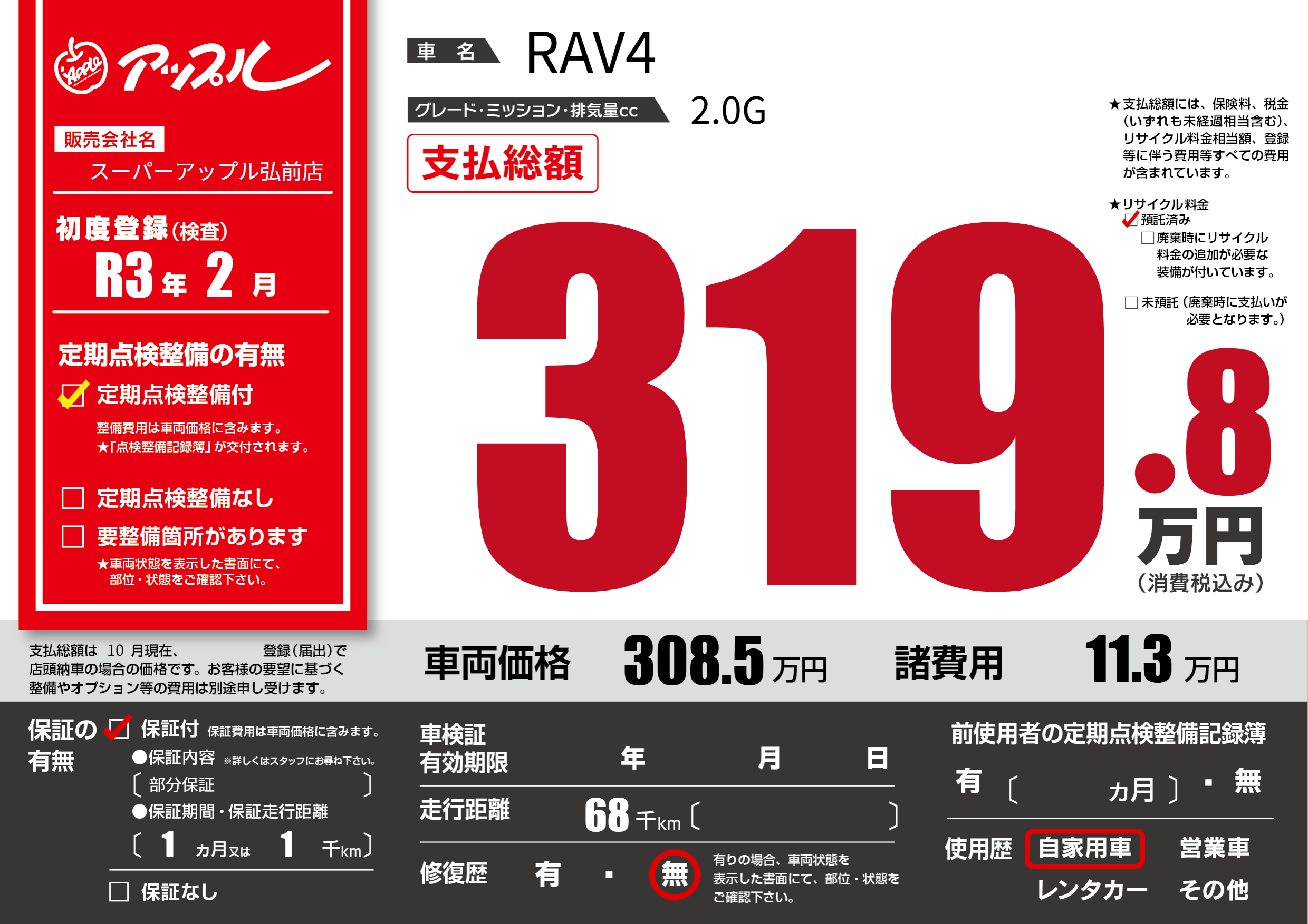 | 車名 | RAV4 | グレード ミッション 排気量 |