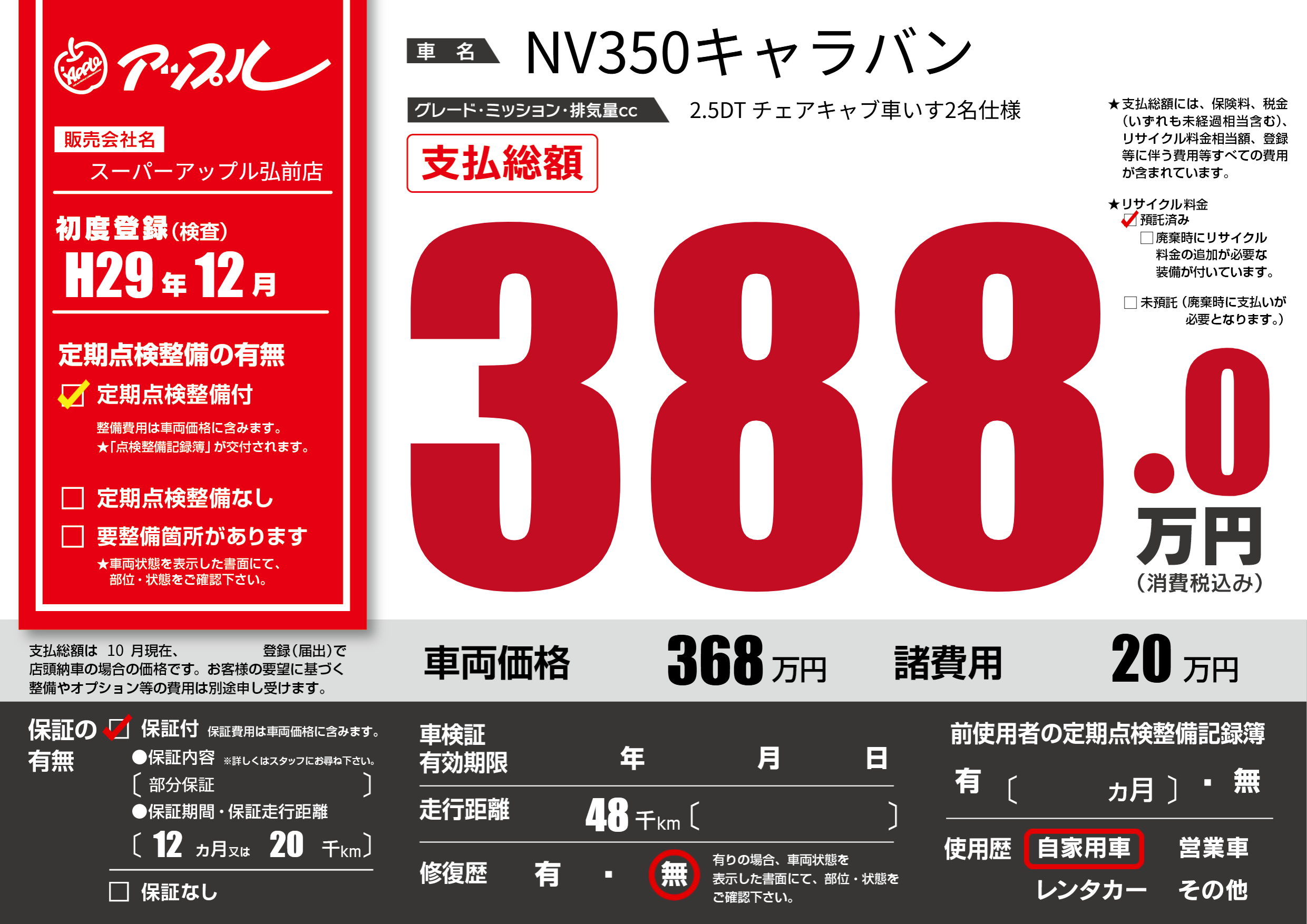 | 走行キロ | 4.8万km | 初年度登録 | H29年12月 |