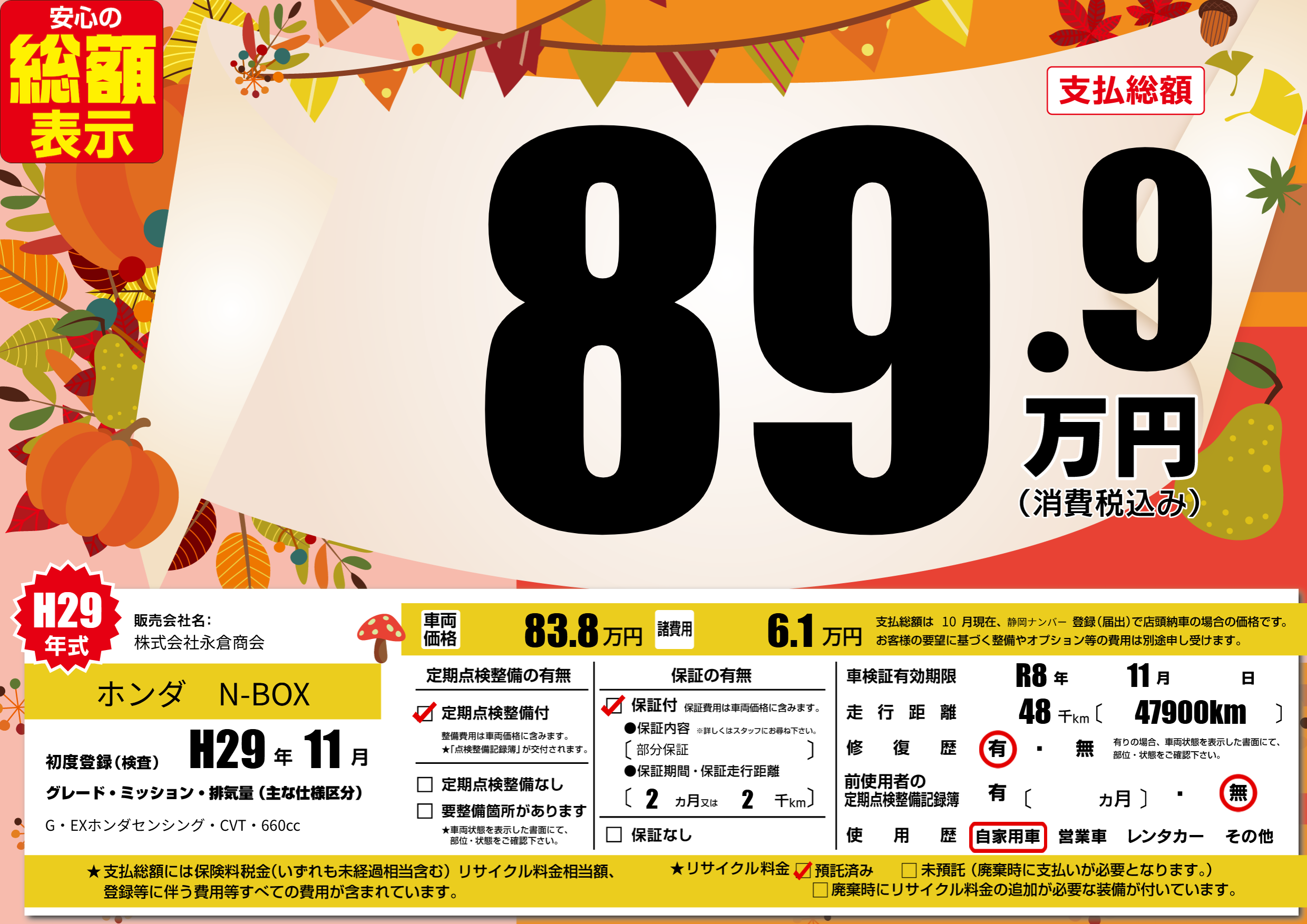 | 車検制限 | R8年 11月 - 日 | ||