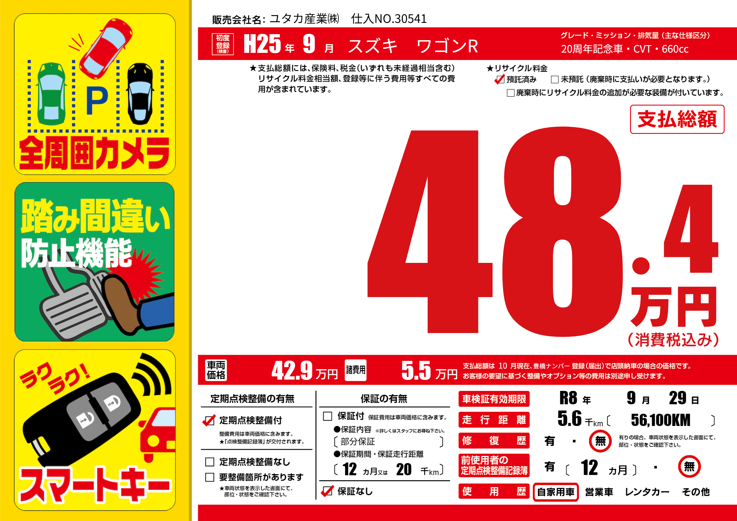 | 走行キロ | 0.5万km | 初年度登録 | H25年9月 |