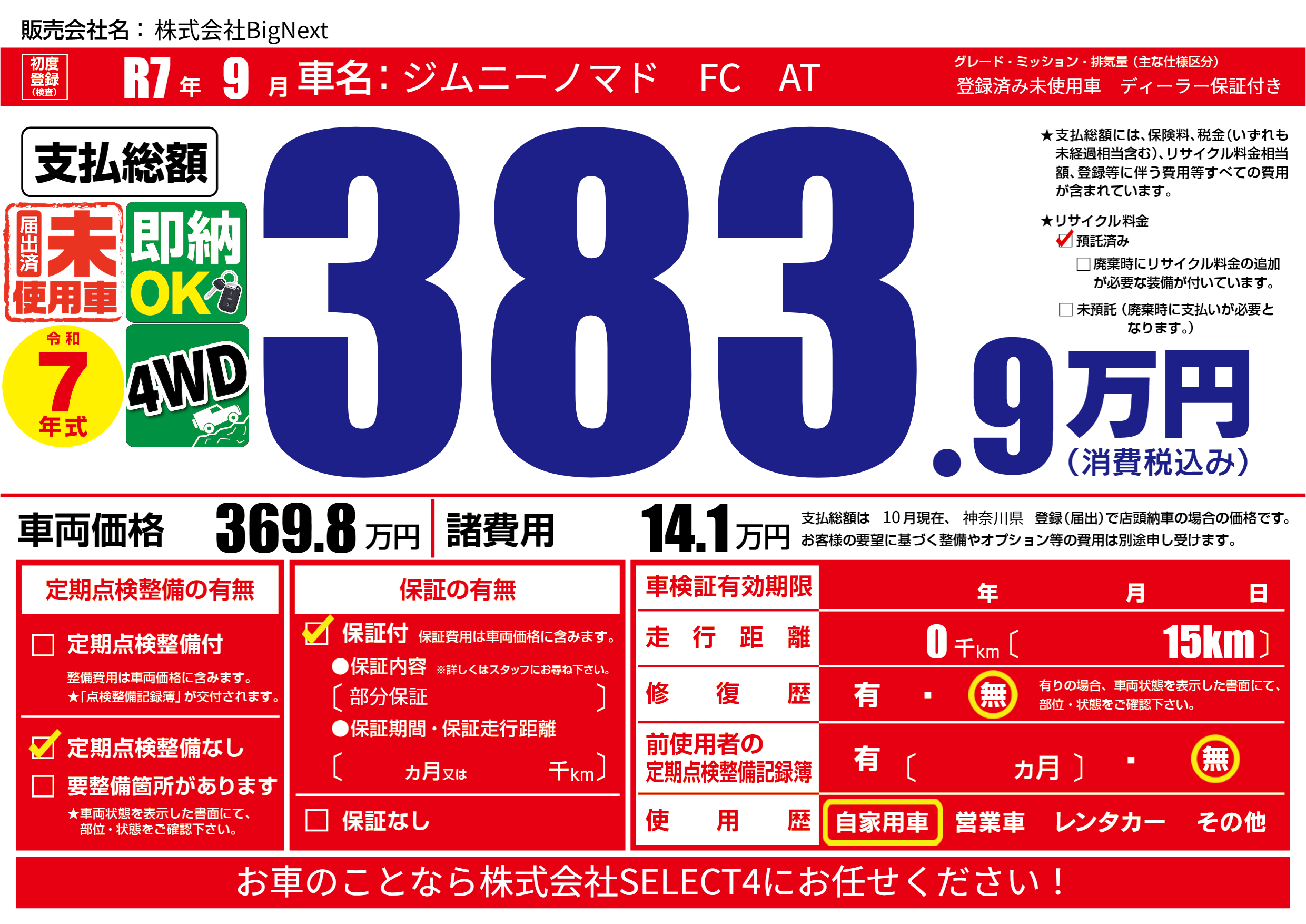 | 初年度登録 | R7年9月 | ||