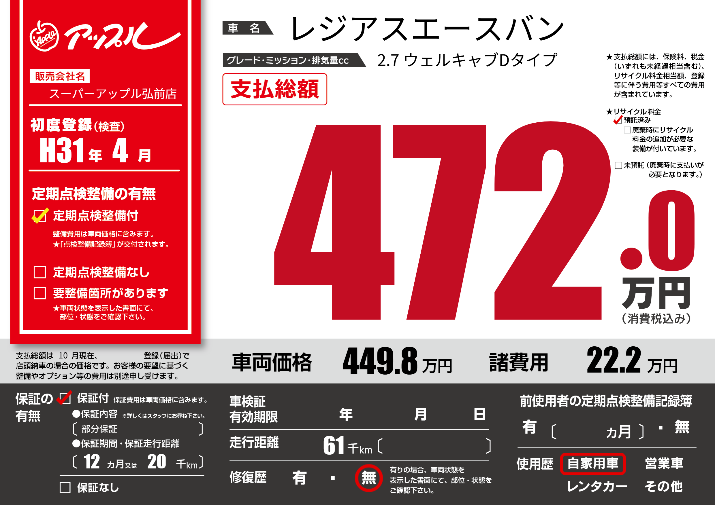 | 初年度登録 | H31年4月 | ||