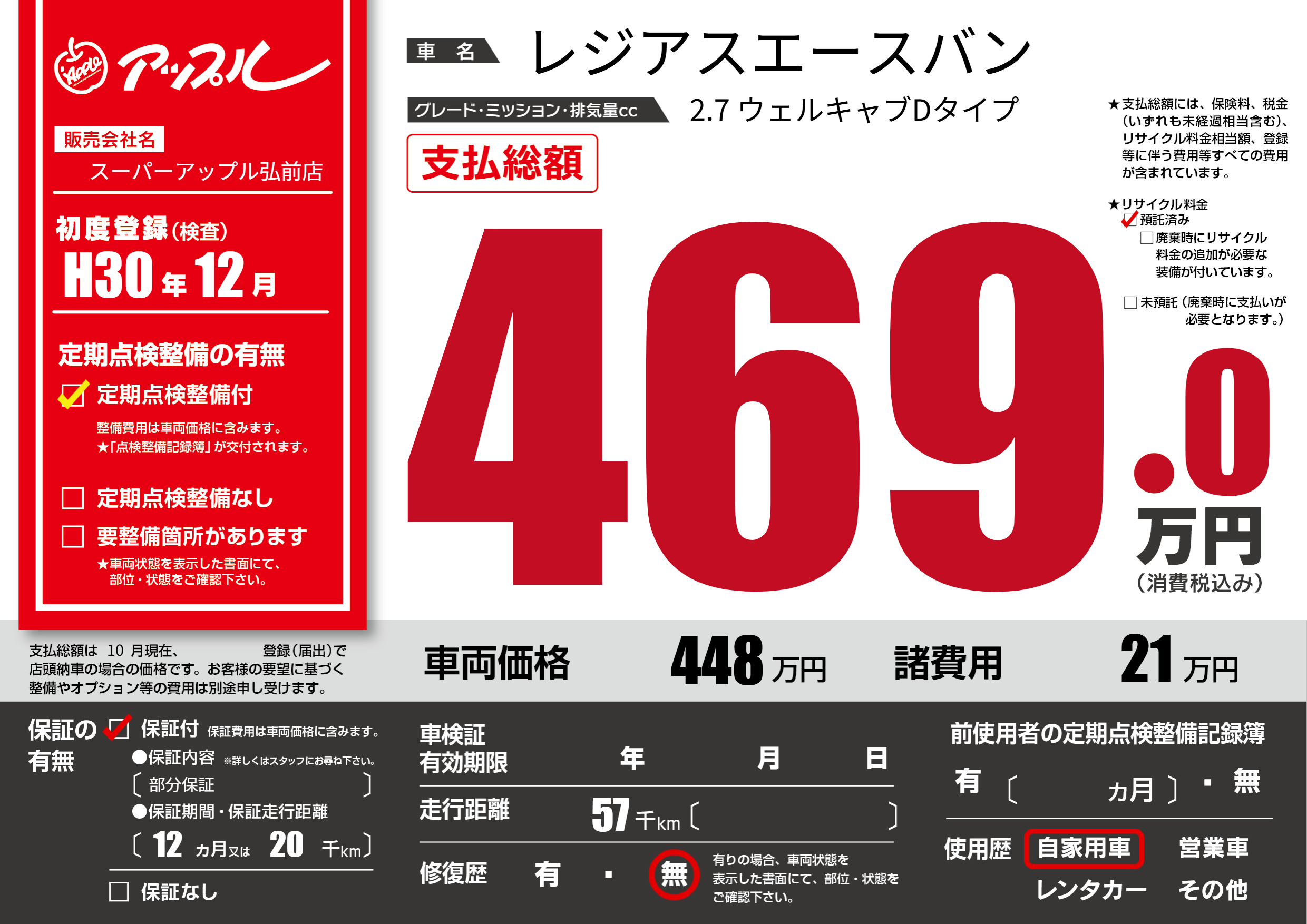 | 走行キロ | 5.7万km | 初年度登録 | H30年12月 |