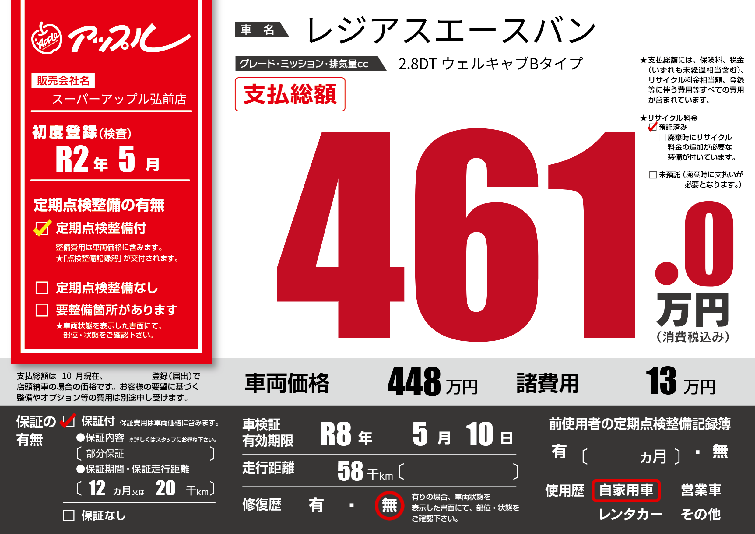 | 走行キロ | 5.8万km | 初年度登録 | R2年5月 |