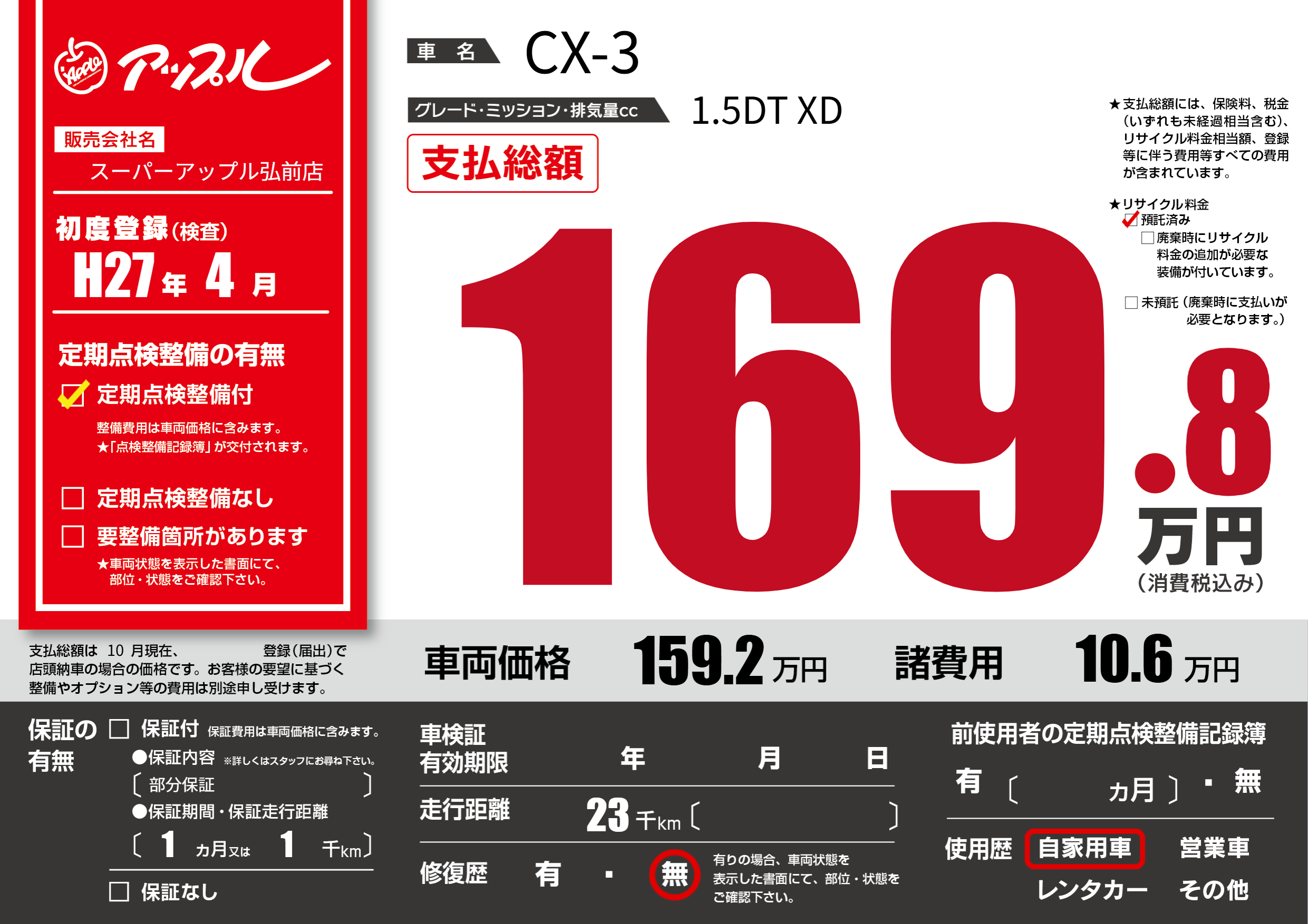 | 車名 | CX-3 | グレード ミッション 排気量 |