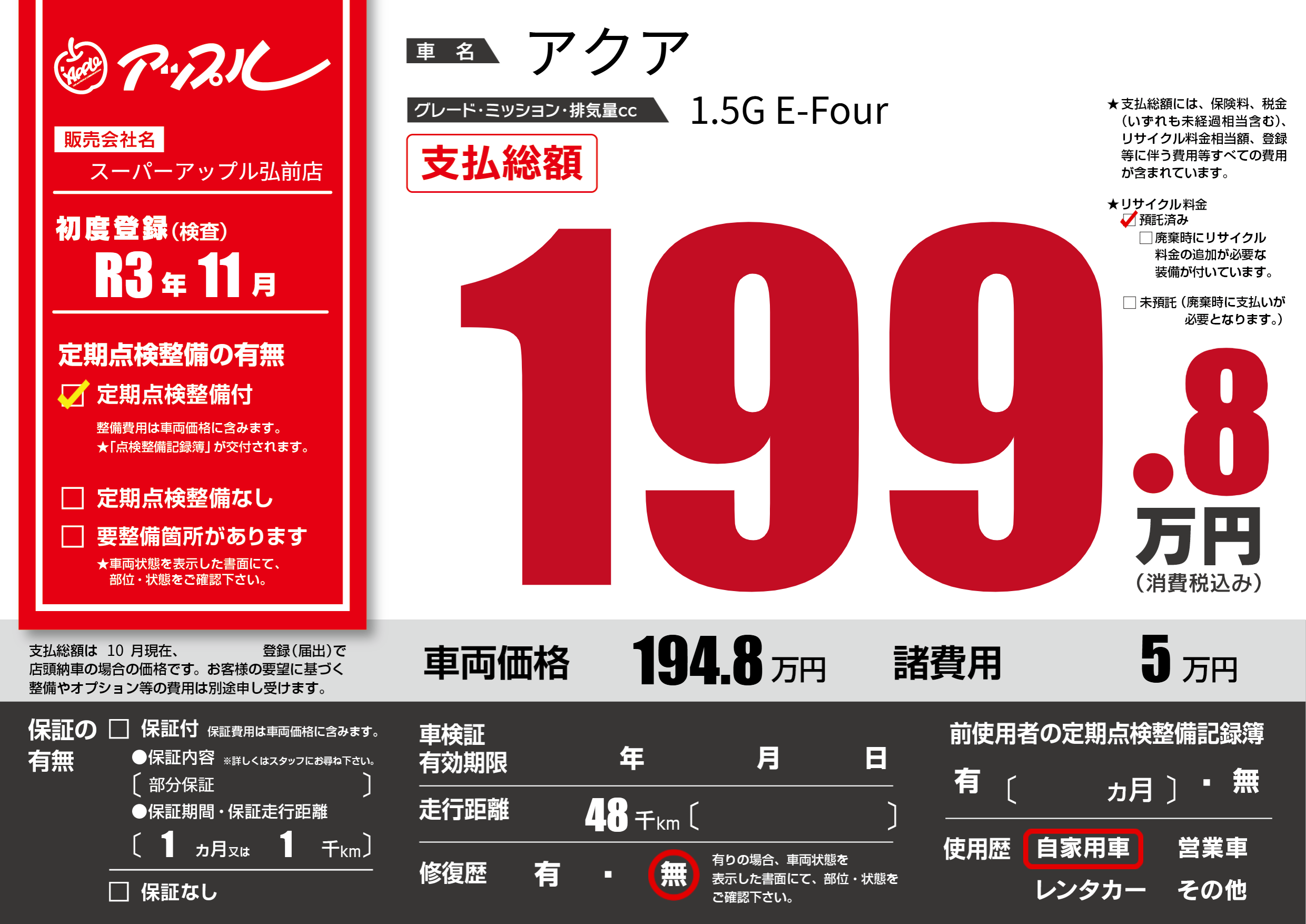 | 定期点検整備 | 定期点検整備あり | ||