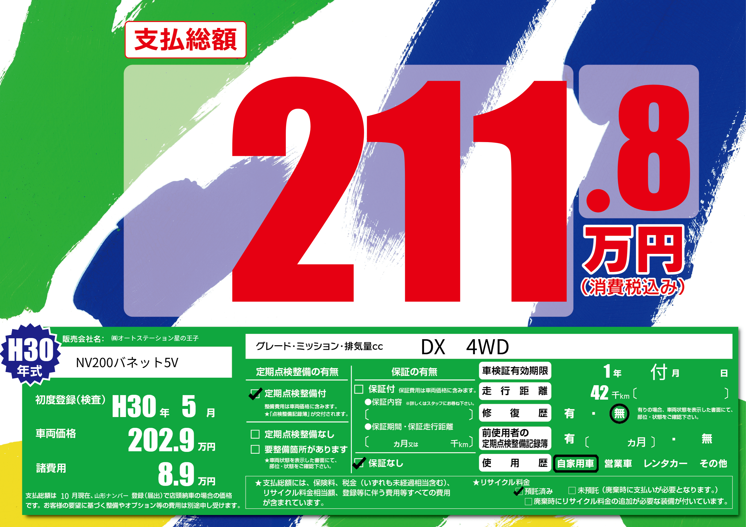 | 車名 | NV200バネット5V | グレード ミッション 排気量 |