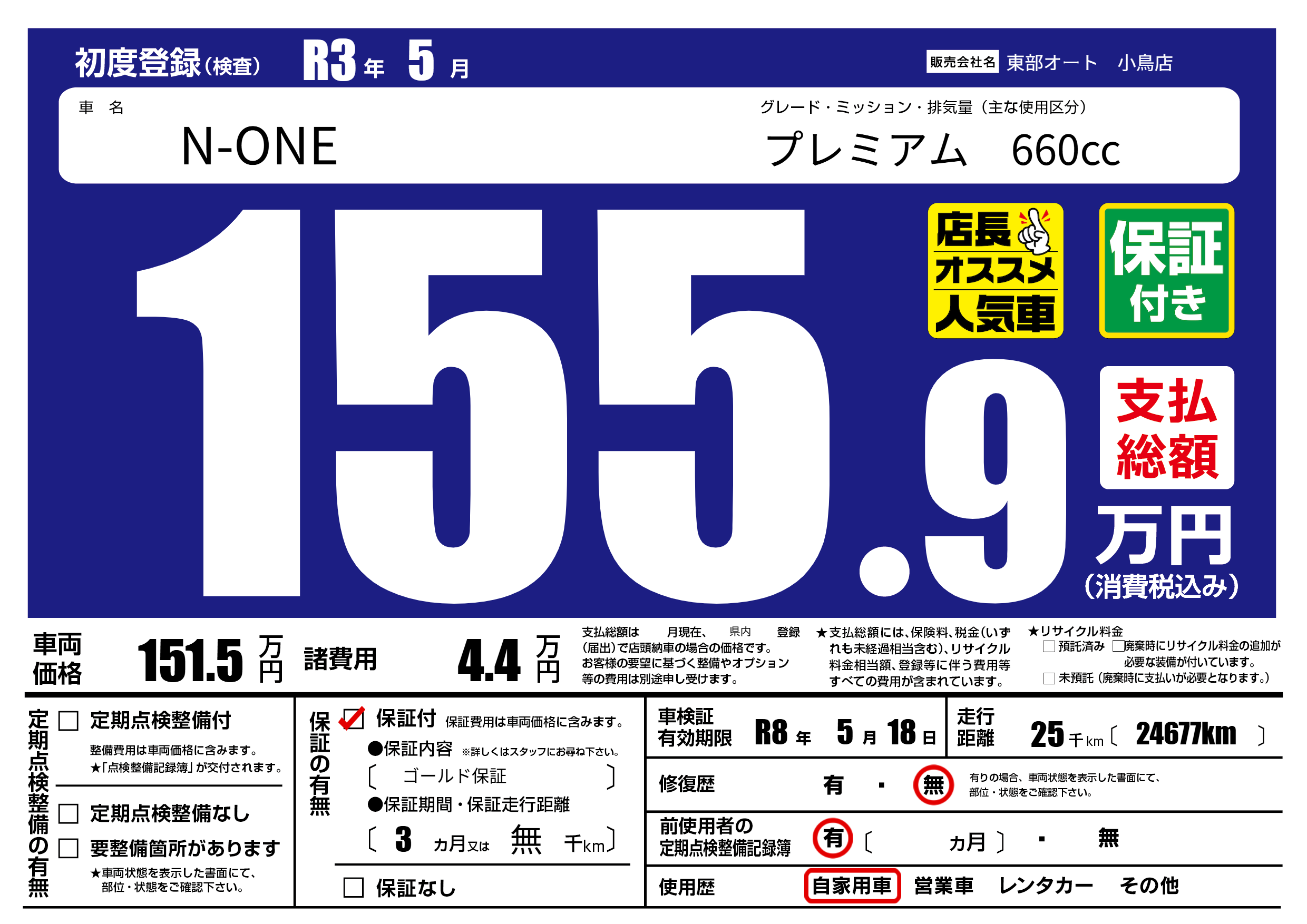 保証付き 保証内容( ゴールド保証) 3ヶ月または(無)千kmまで |