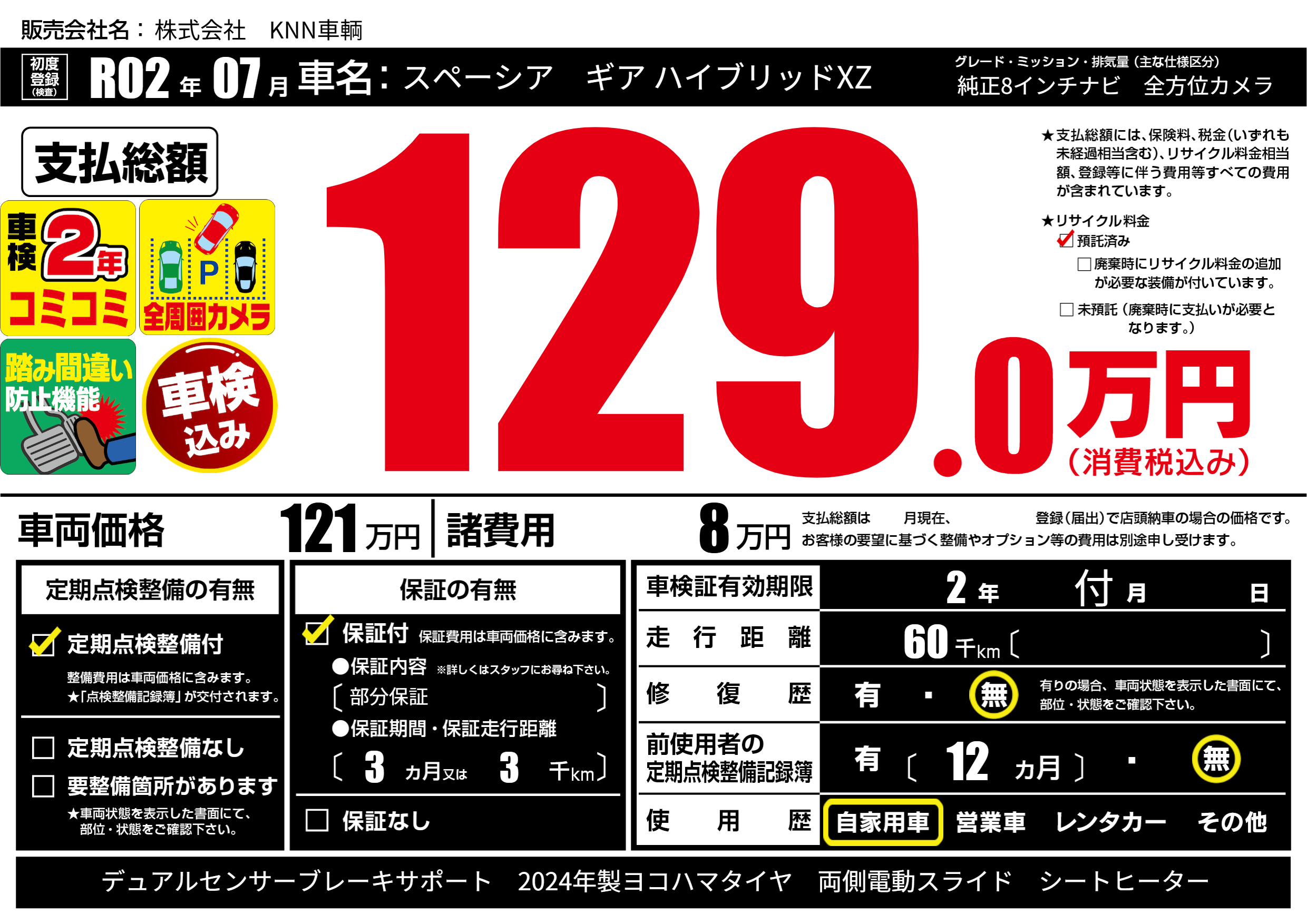| 走行キロ | 6万km | 初年度登録 | R02年07月 |