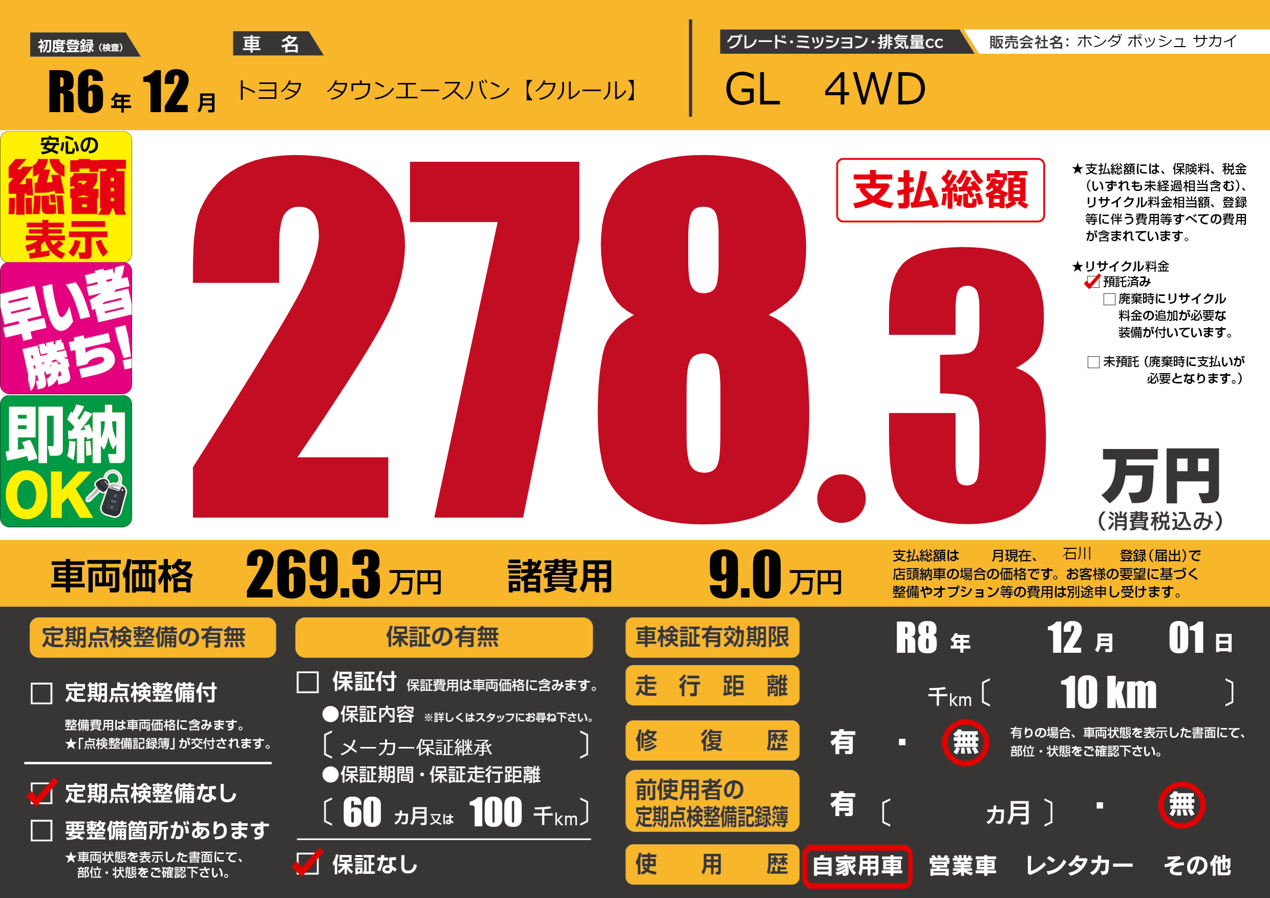 | 車名 | トヨタ タウンエースバン【クルール】 | グレード ミッション 排気量 |