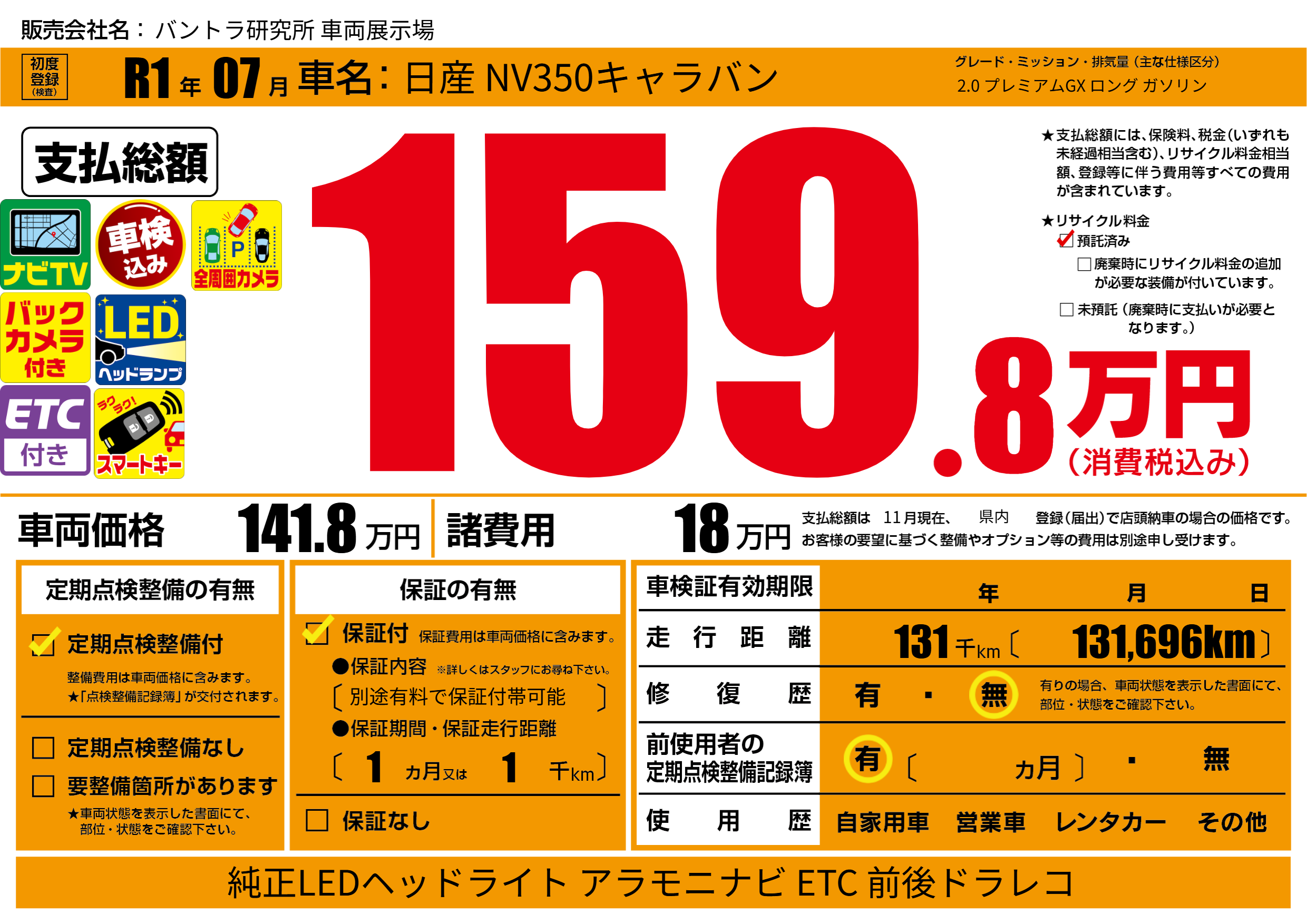 保証内容(別途有料で保証付帯可能) 1ヶ月または1千km