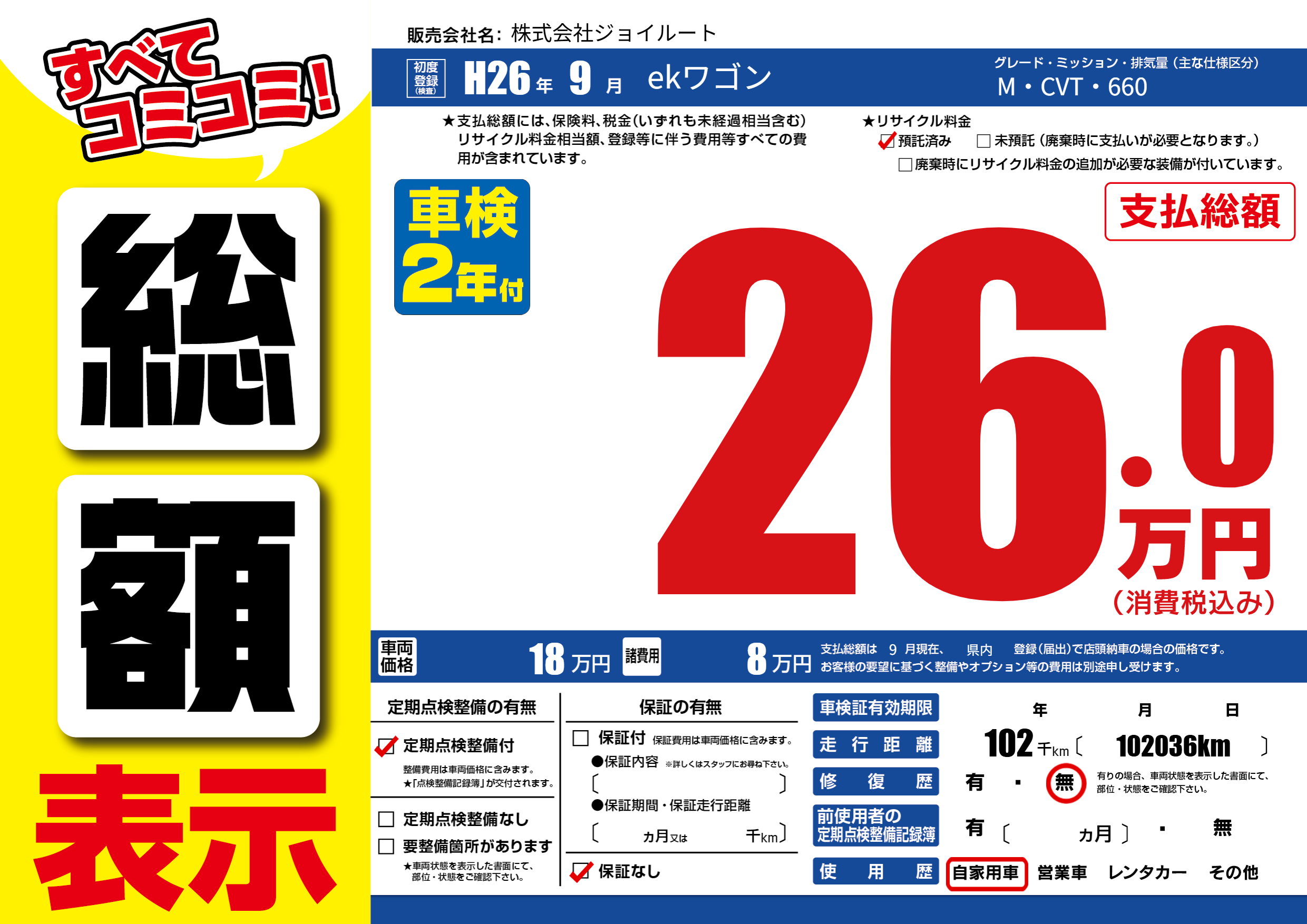 | 定期点検整備 | 定期点検整備あり | ||