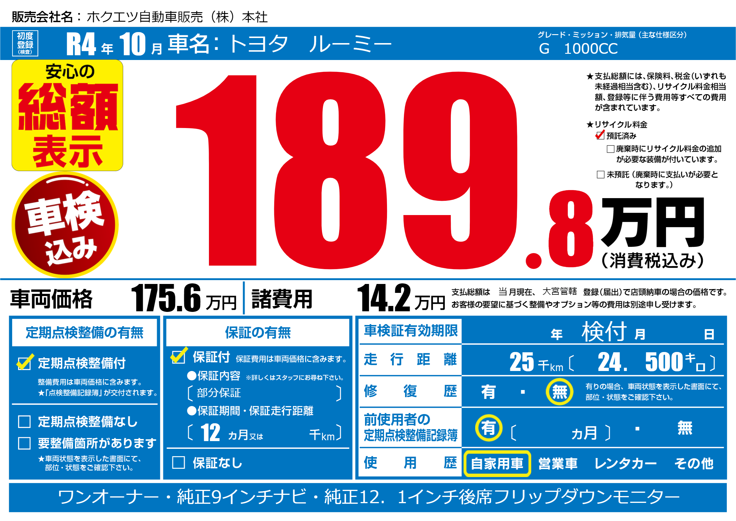 | 走行キロ | 2.5万km | 初年度登録 | R4年10月 |